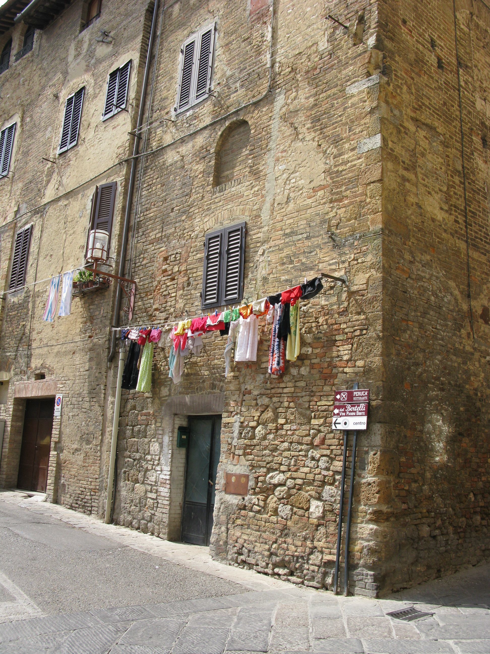 This was taken in San Gimignano, Italy in 2008. Living in an apartment means one has to be creative when hanging out clothes to dry.