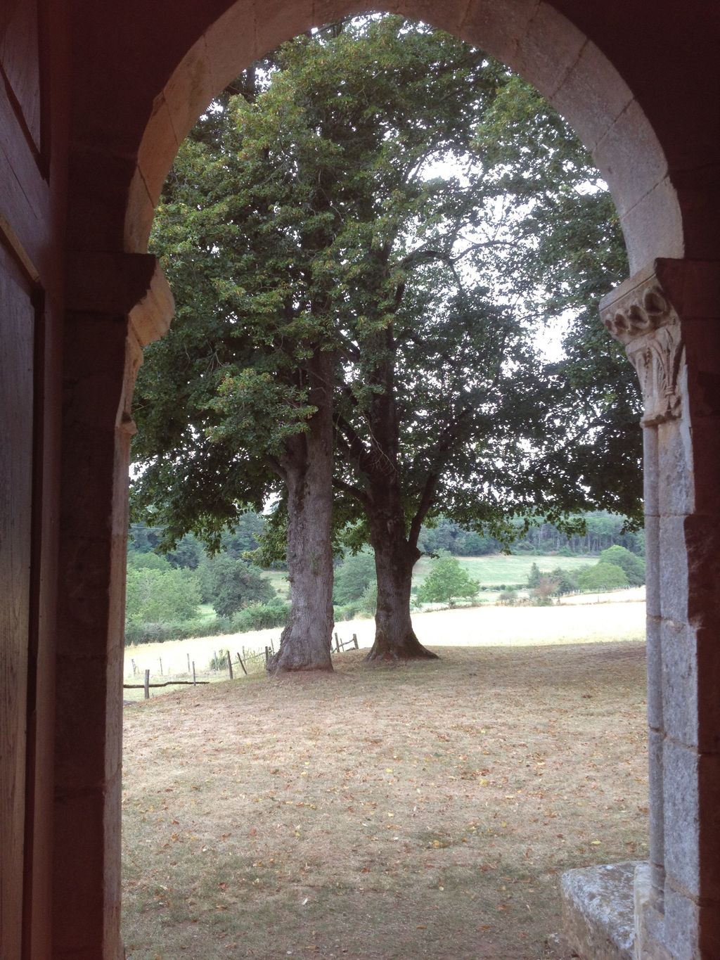 Vue sur la campagne charentaise depuis le seuil d'une chapelle templière du XIIe s.