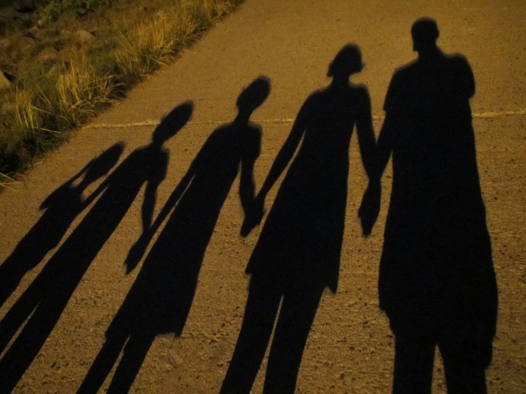 We were in Hossegor, Landes in (Southeast France). We walked along the beach, and between streetlights, our shadows grew. Children found it very funny, so I took the picture.
