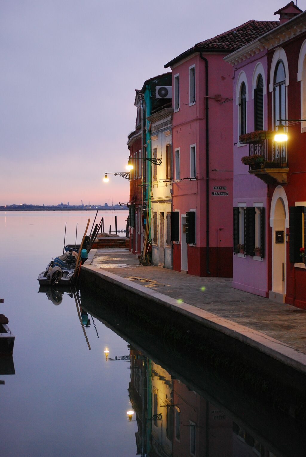 Tramonto invernale nella famosa isola della laguna veneta, la cui caratteristica sono le case colorate.