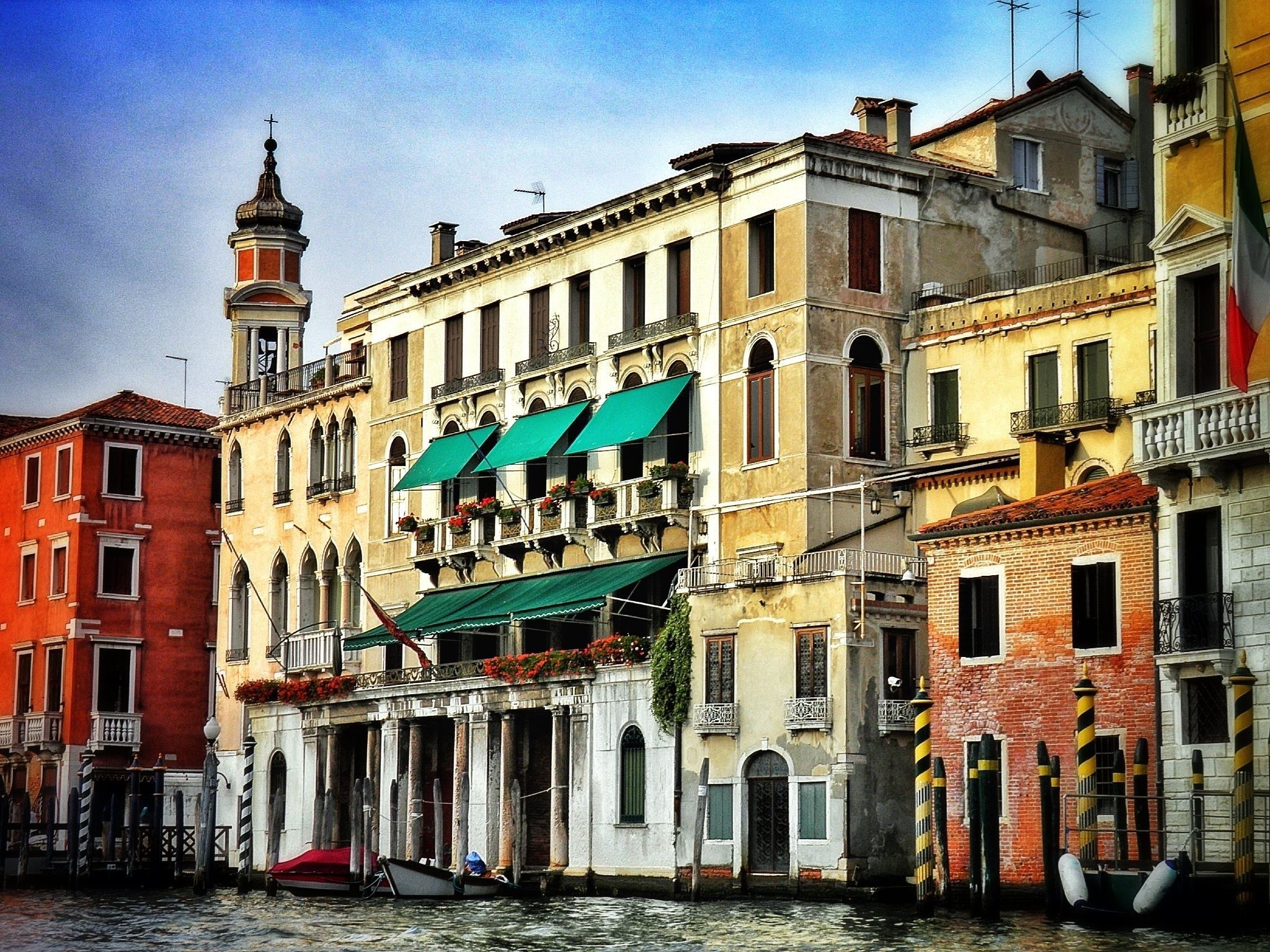 Venetian balconies overlooking the Grand Canal. Venice, Italy