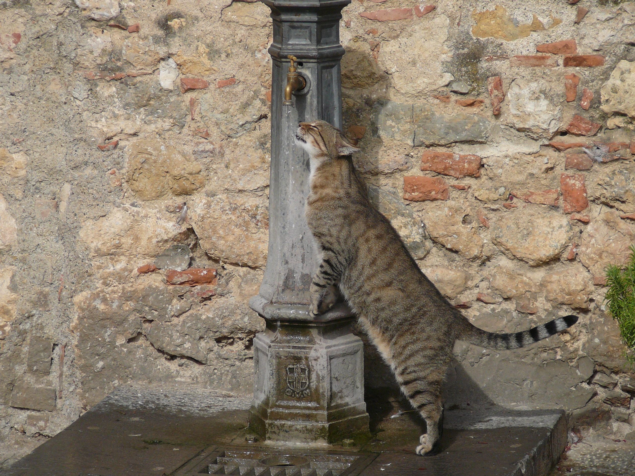 Even cats drink water from the main water pump in Monteriggioni's piazza on hot days