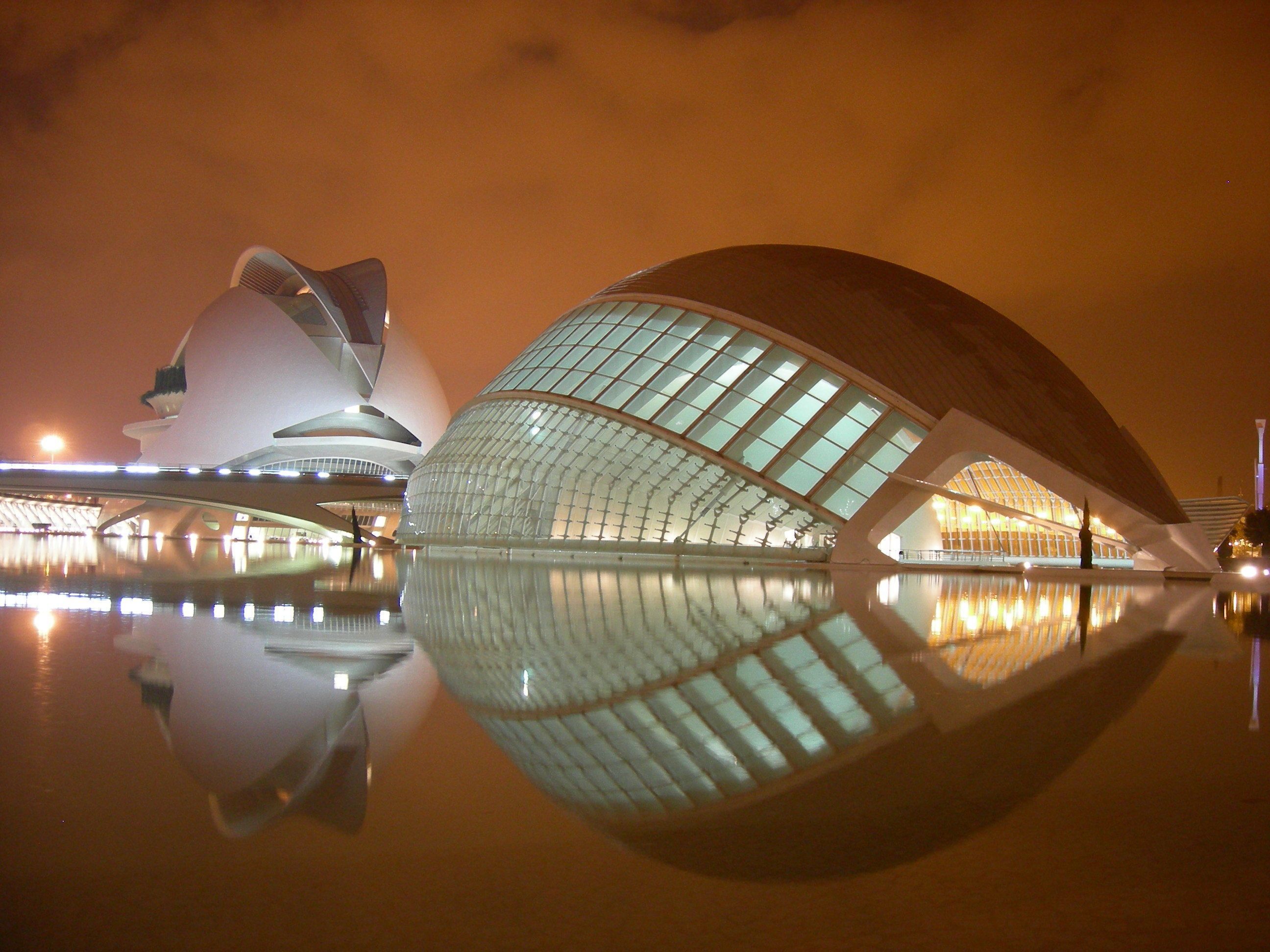 foto in notturna della città delle arti e delle scienze di Valencia