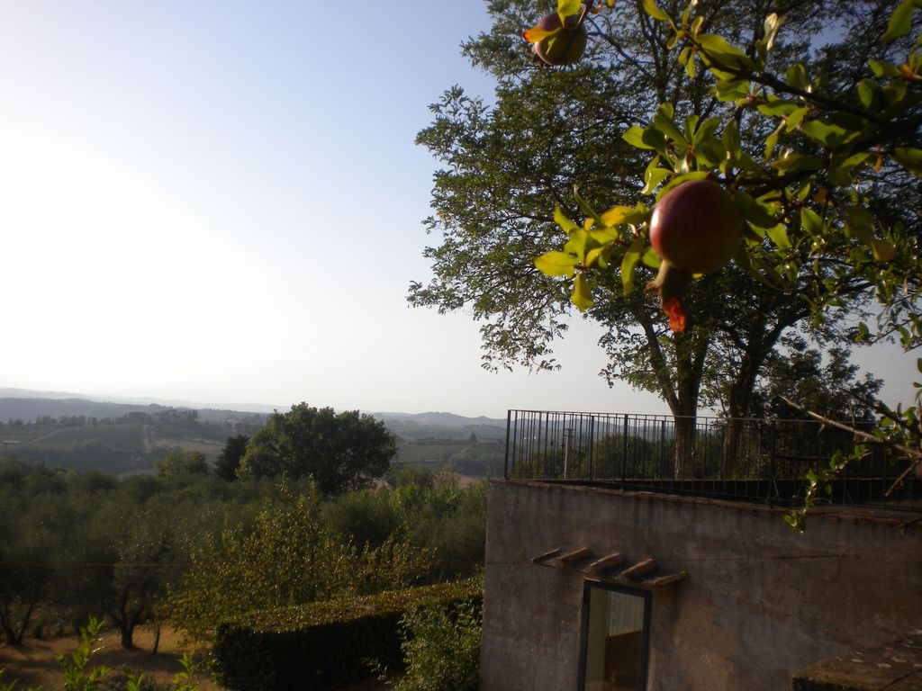 A pomegranate fruit, admires the marvelous views, in a warm summer afternoon.