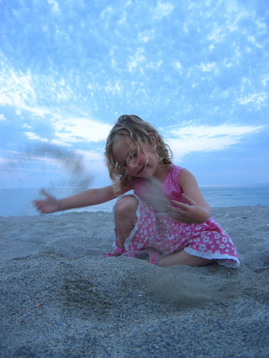 Voordat we uit eten gaan komen we dit lekkere strand tegen. En ik -ook al heb ik een mooie jurk aan- kan het toch niet laten om het zand door mijn vingers te voelen glijden! Na het wassen van de handjes hebben we een heerlijke pizza gegeten!