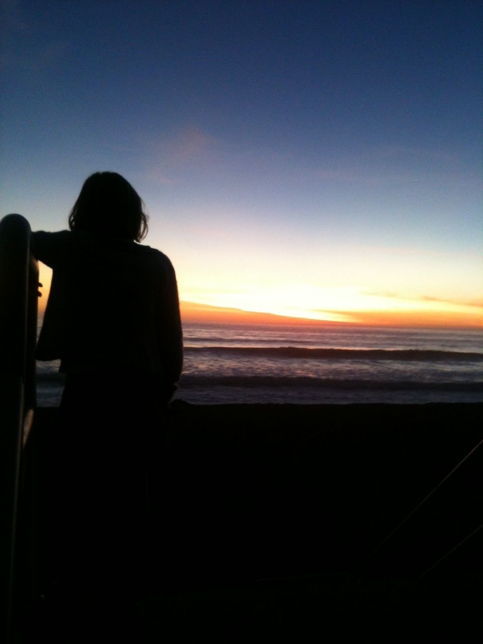 Sunset at Aptos Beach in California, 7 year-old Abby watching the sun set on Thanksgiving Day