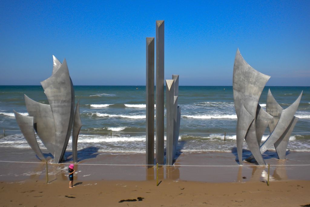 Ho scattato questa foto quasi al termine di una giornata trascorsa a visitare i luoghi dello sbarco in Normandia. Davanti al monumento ai caduti di Omaha Beach ho visto questa bambina che giocava. Mi ha colpito il contrasto tra l'orrore evocato dal monumento e l'innocenza della piccola.