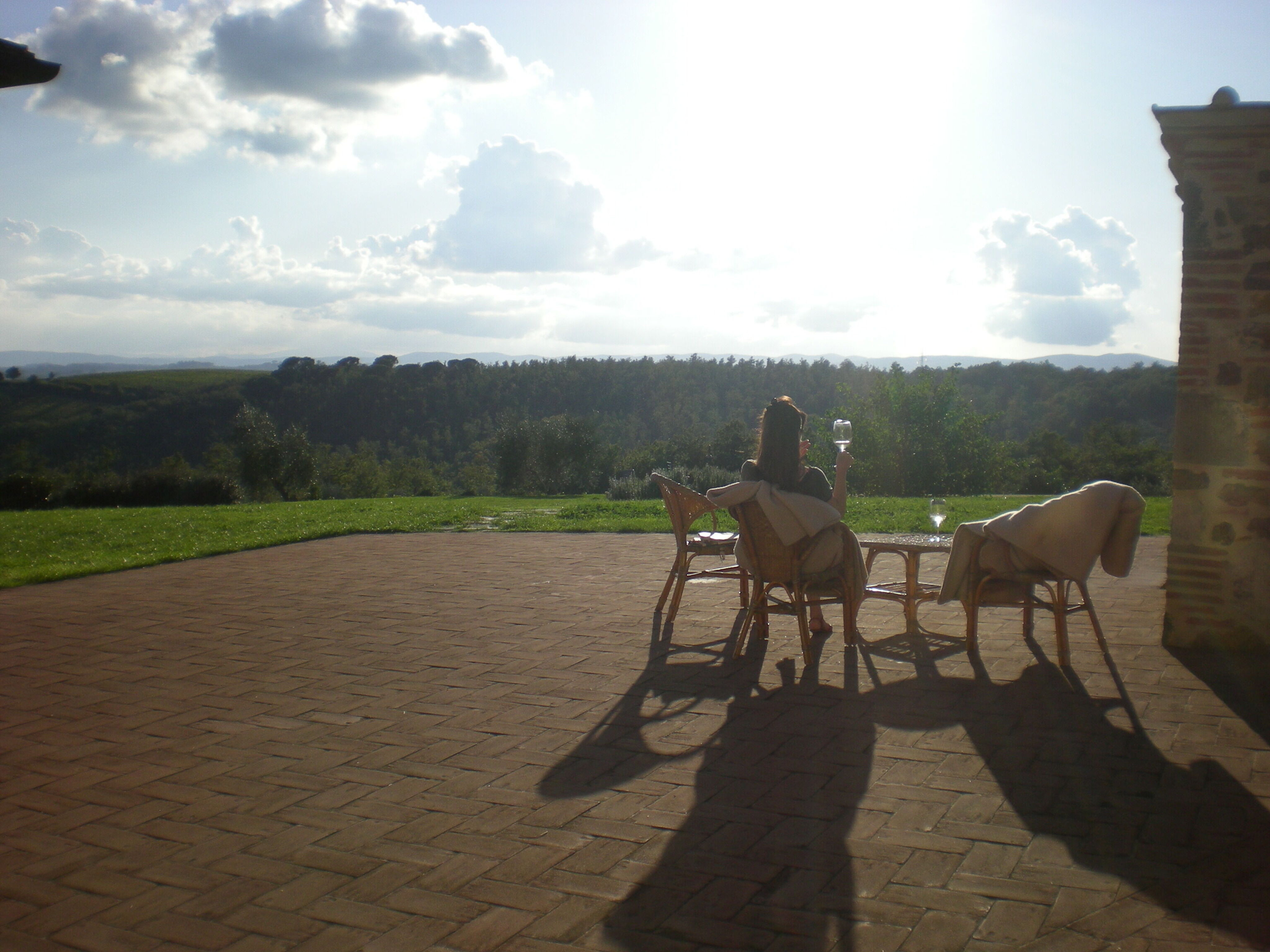 Viewing the beautiful landscape of the hills near Siena and the perfectly chliled local wine.