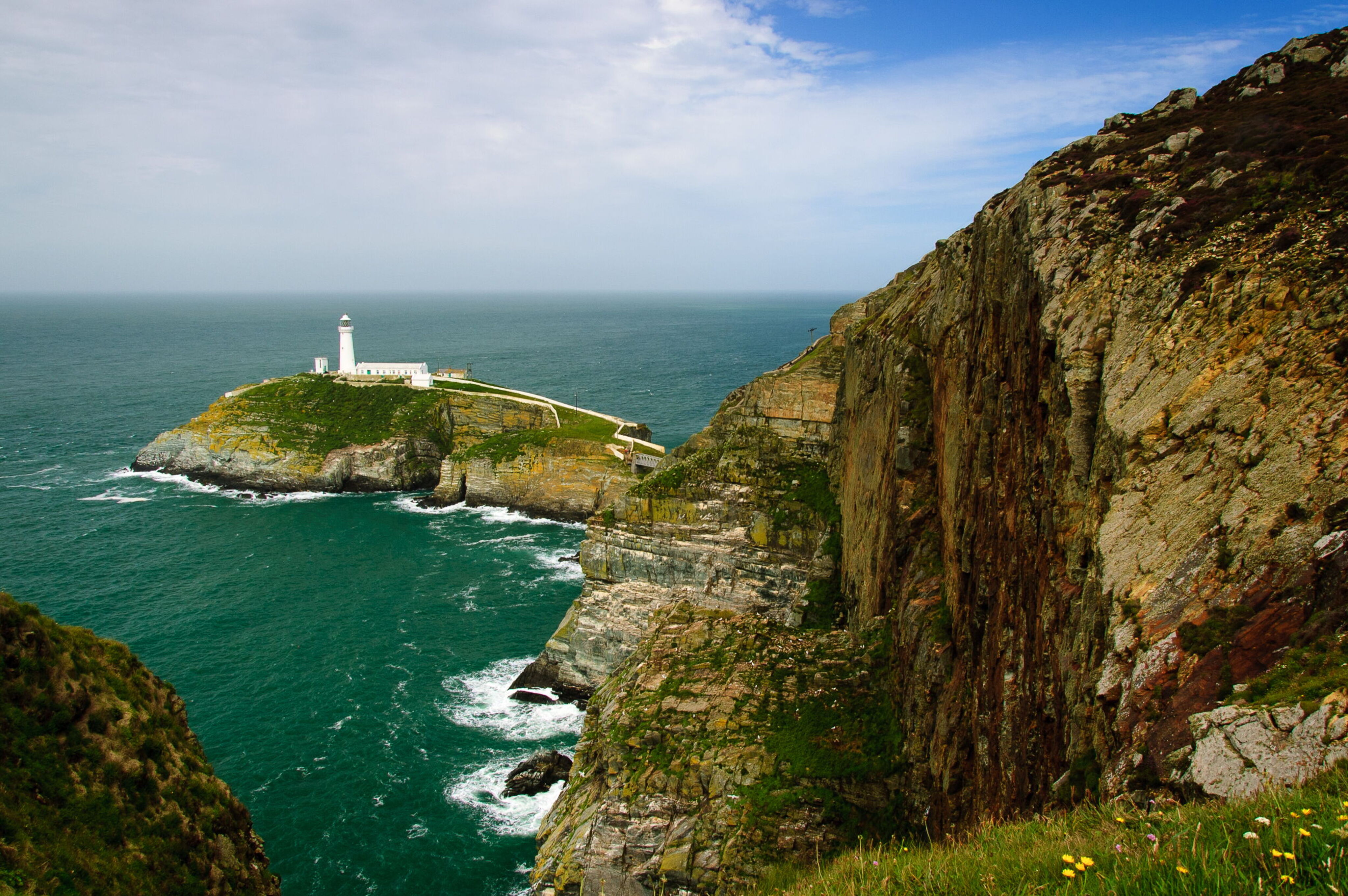 Il faro di South Stack in Galles, dal suo isolotto guarda verso il mare aperto, in direzione di Dublino. Ho scattato questa foto colpito dall'intenso colore verde del mare in questo punto della costa.