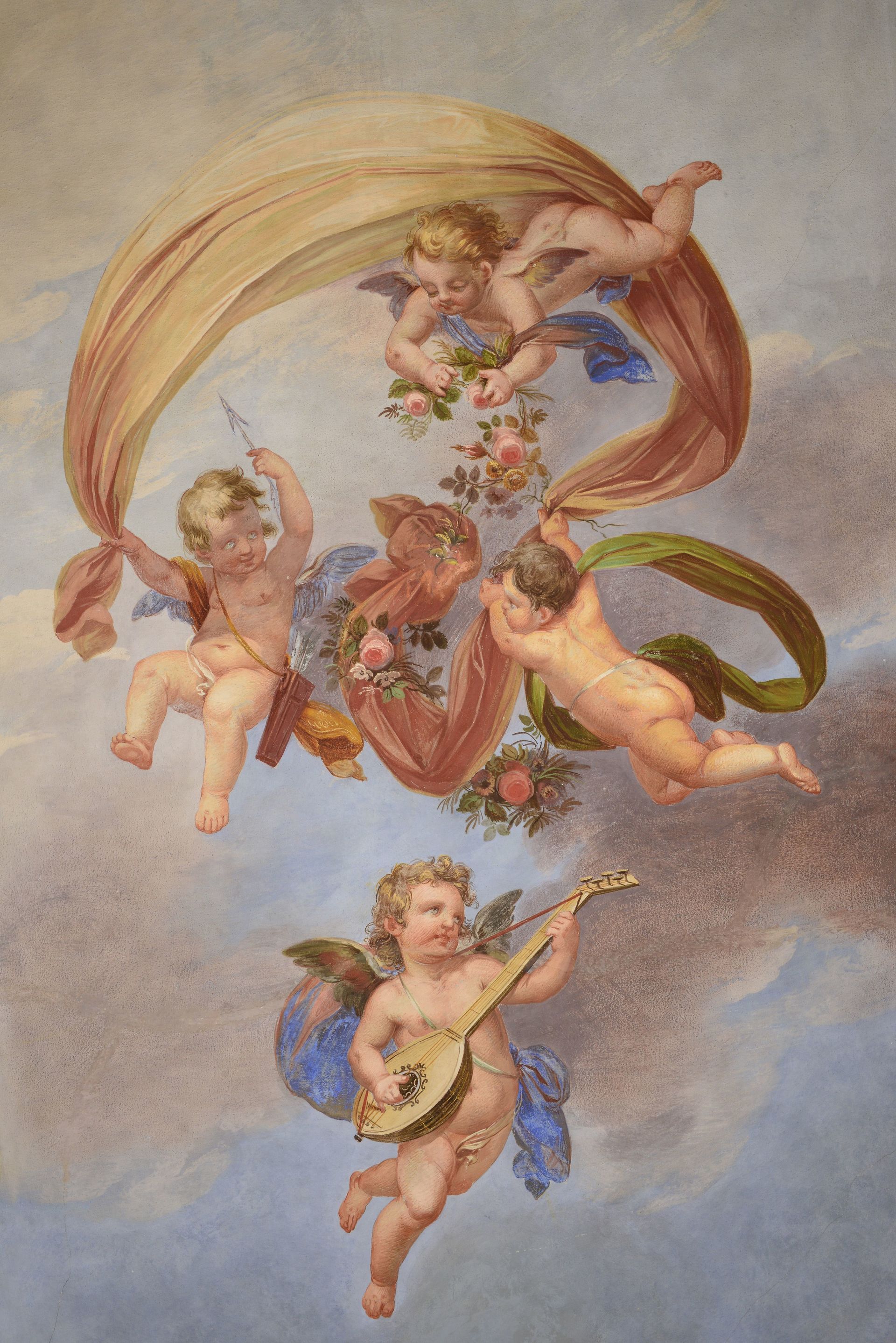 First floor: open-space comprising a spacious lounge, a kitchenette, a double bedroom, a single sofa-bed and an elegant bathroom with shower. The lounge features a fantastic frescoed ceiling dating back to the 18th century.