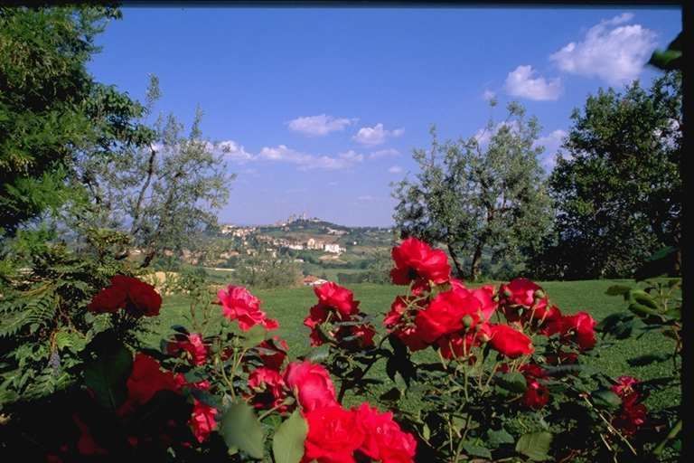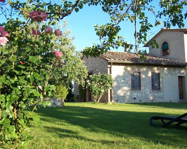 At Guest’s DisposalThe house is a charming and traditional Tuscan farmhouse with a lovely garden that encircle the house and enjoys a magnificent view of the medieval walled town with his famous towers. The property is surrounded by olive groves and vineyards.