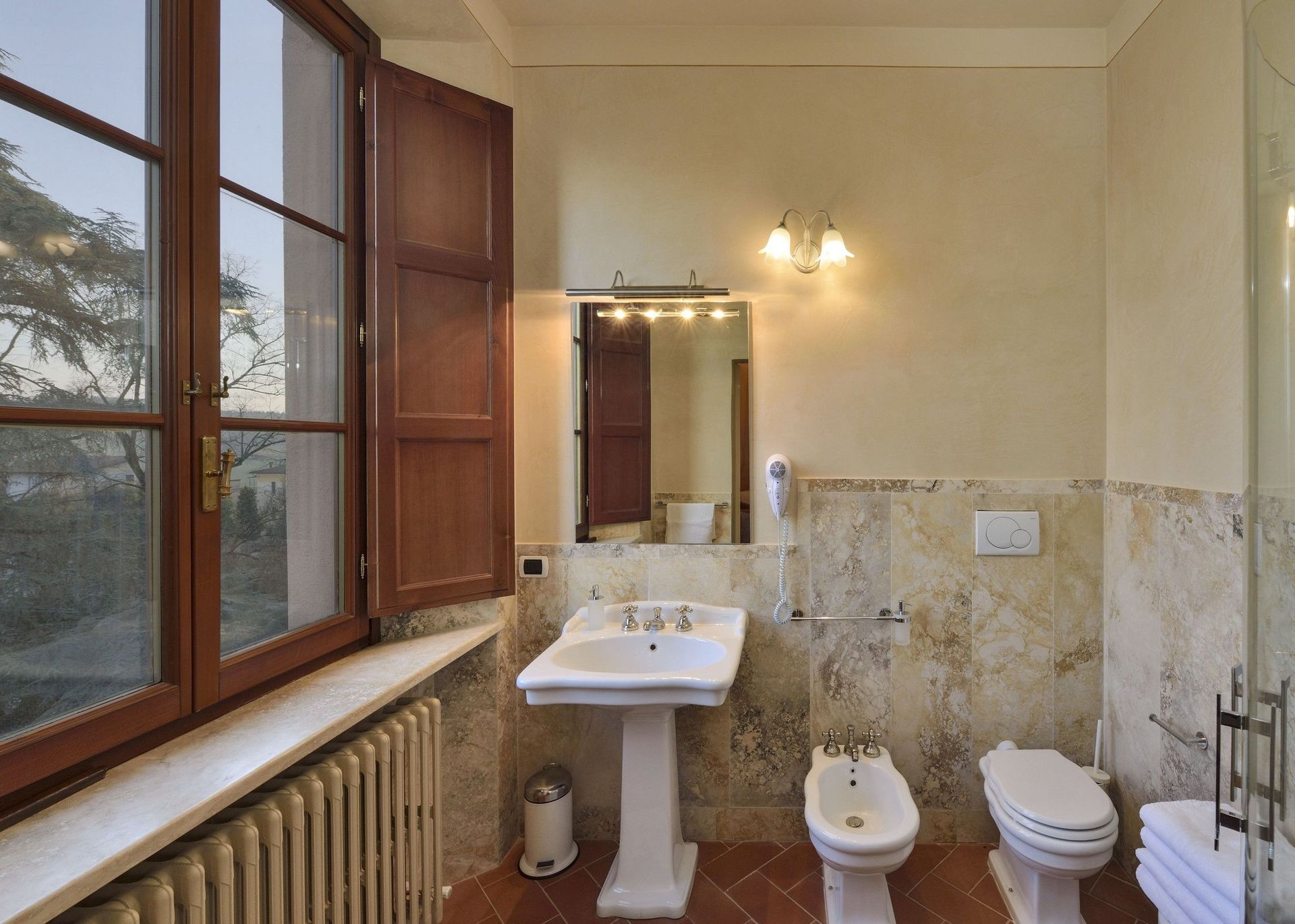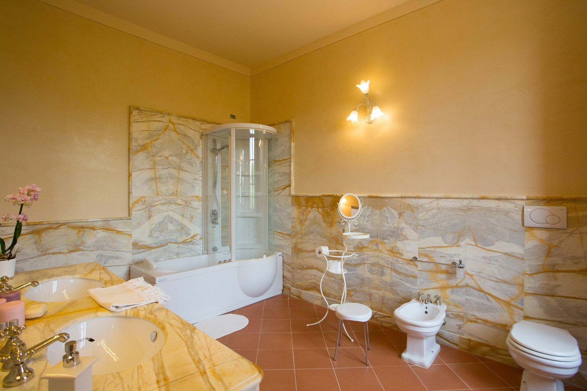 Bedroom + Ensuite Bathroom 6: double bed, WIFI internet, air conditioning, television, basin, toilet, bidet, bathtub, hairdryer.