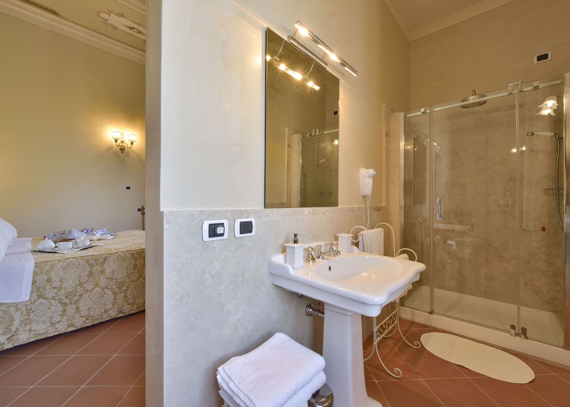 Bedroom + Ensuite Bathroom 4: double bed, WIFI internet, air conditioning, television, basin, toilet, bidet, shower, hairdryer.