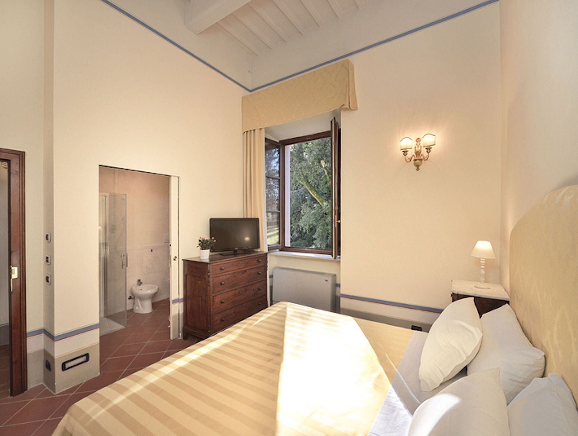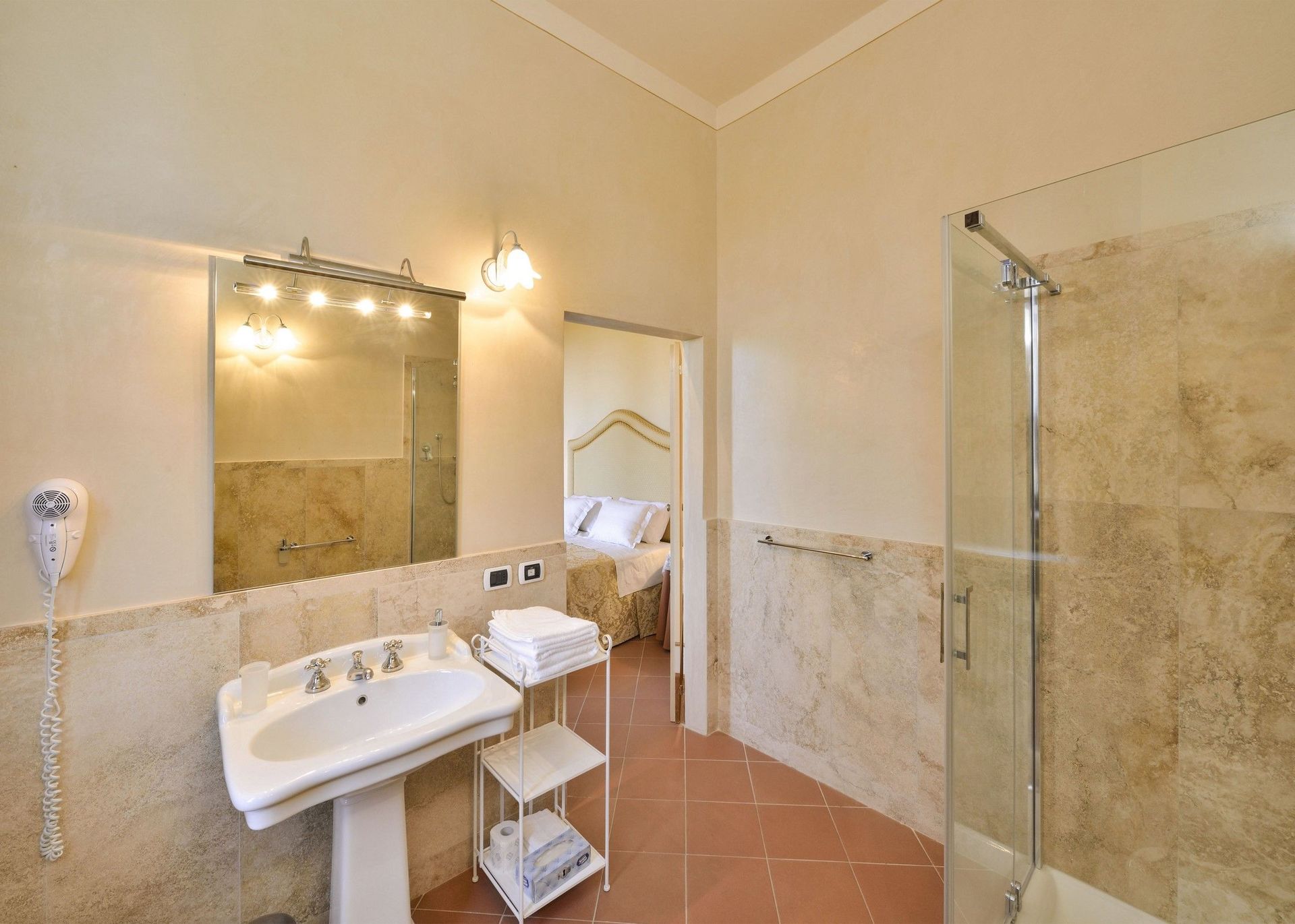 Bedroom + Ensuite Bathroom 7: double bed, WIFI internet, air conditioning, television, basin, toilet, bidet, shower, hairdryer.