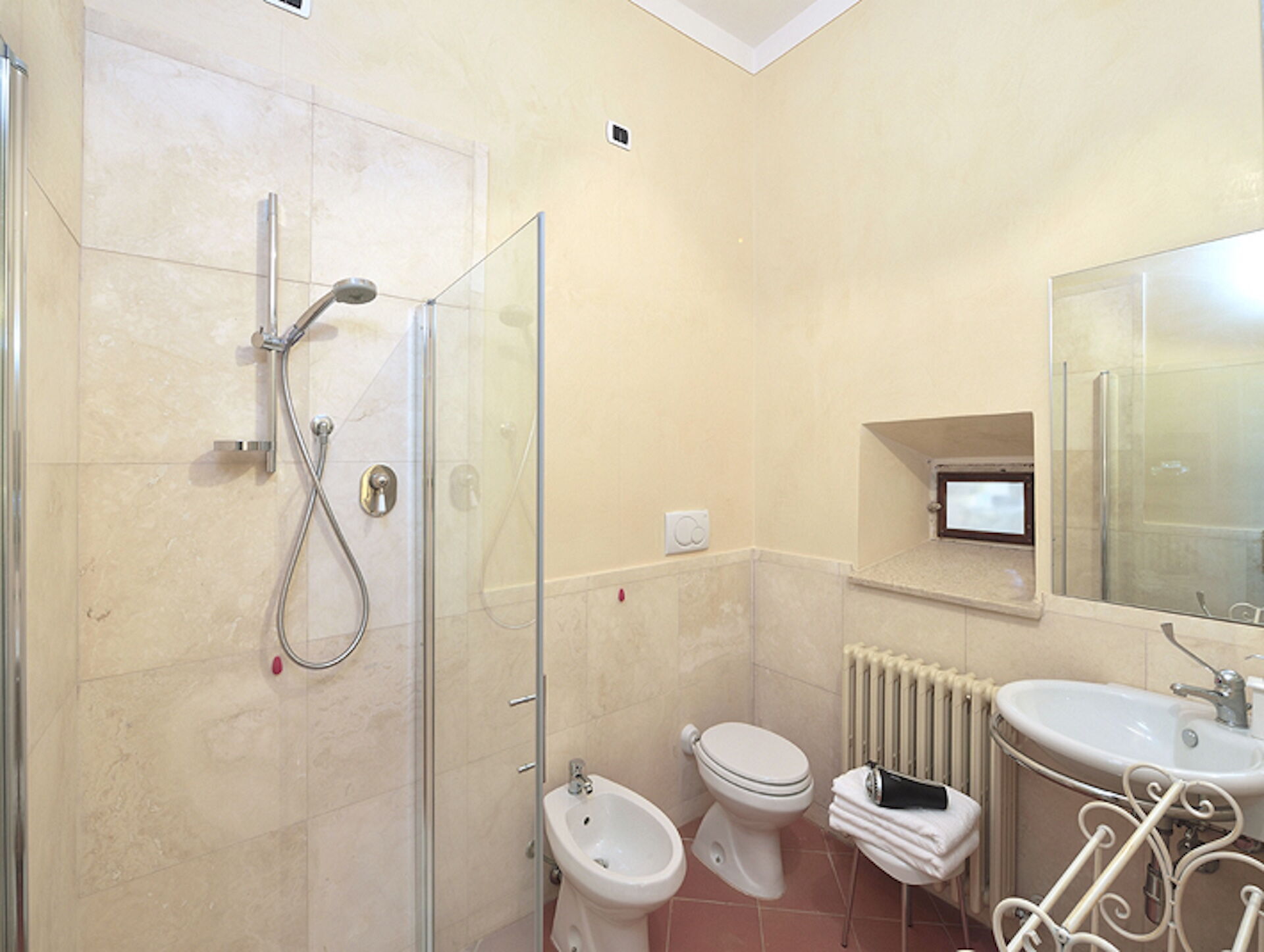 Bedroom + Ensuite Bathroom 5: double bed, WIFI internet, air conditioning, television, basin, toilet, bidet, shower, hairdryer.