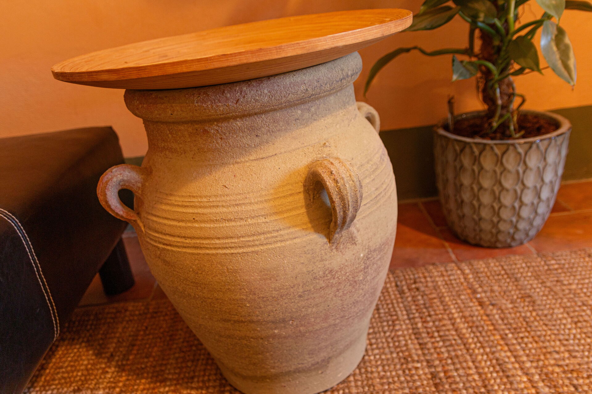 The kitchen is well equipped with microwave, stoves, oven, coffee machine, toaster, dishwasher and of course utensils. We provide basics such as coffee powder, sugar, salt, locally made olive oil, vinegar and little snacks. Also dish soap and dishwasher tabs are part of the kitchen equipment.