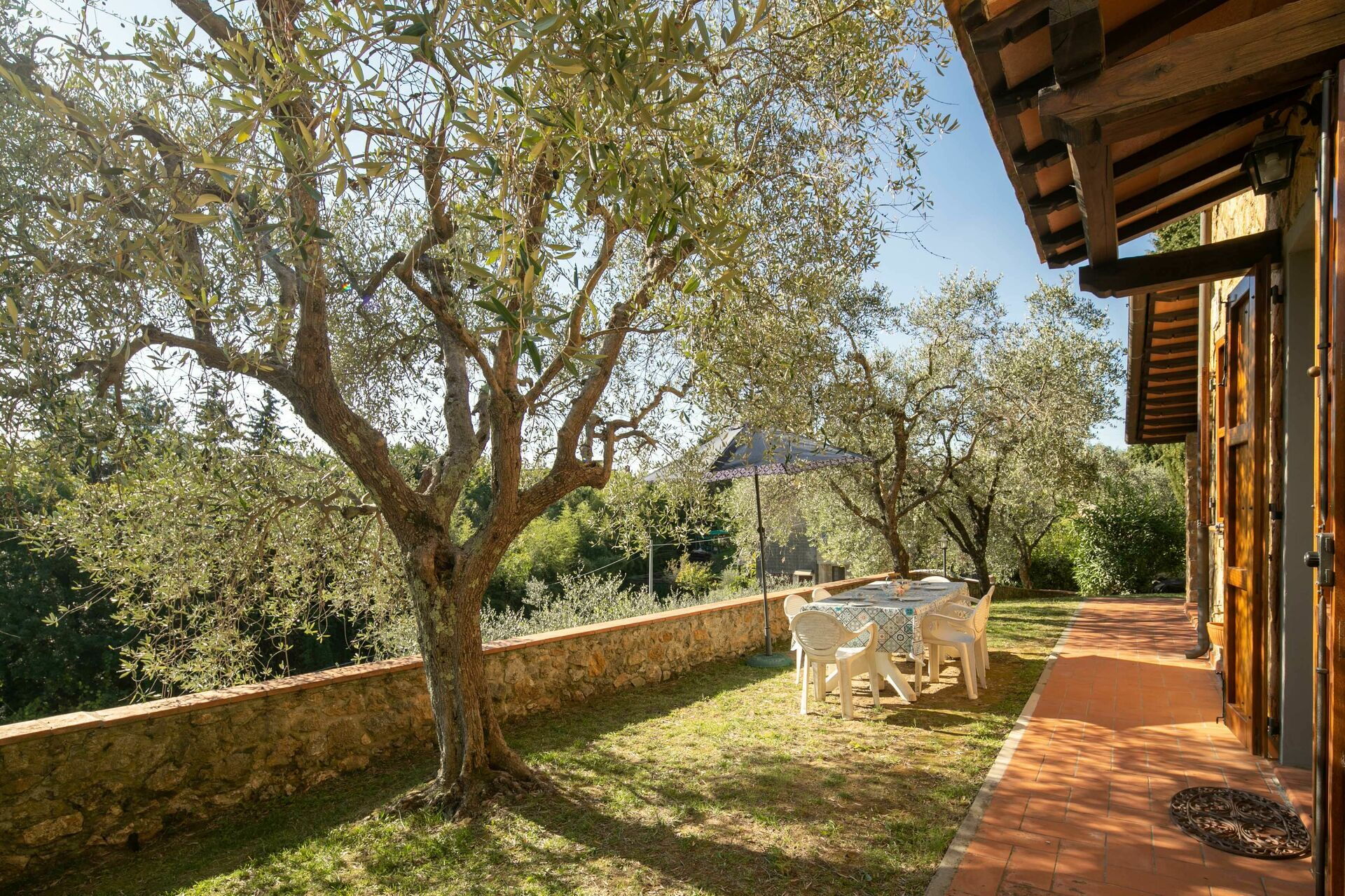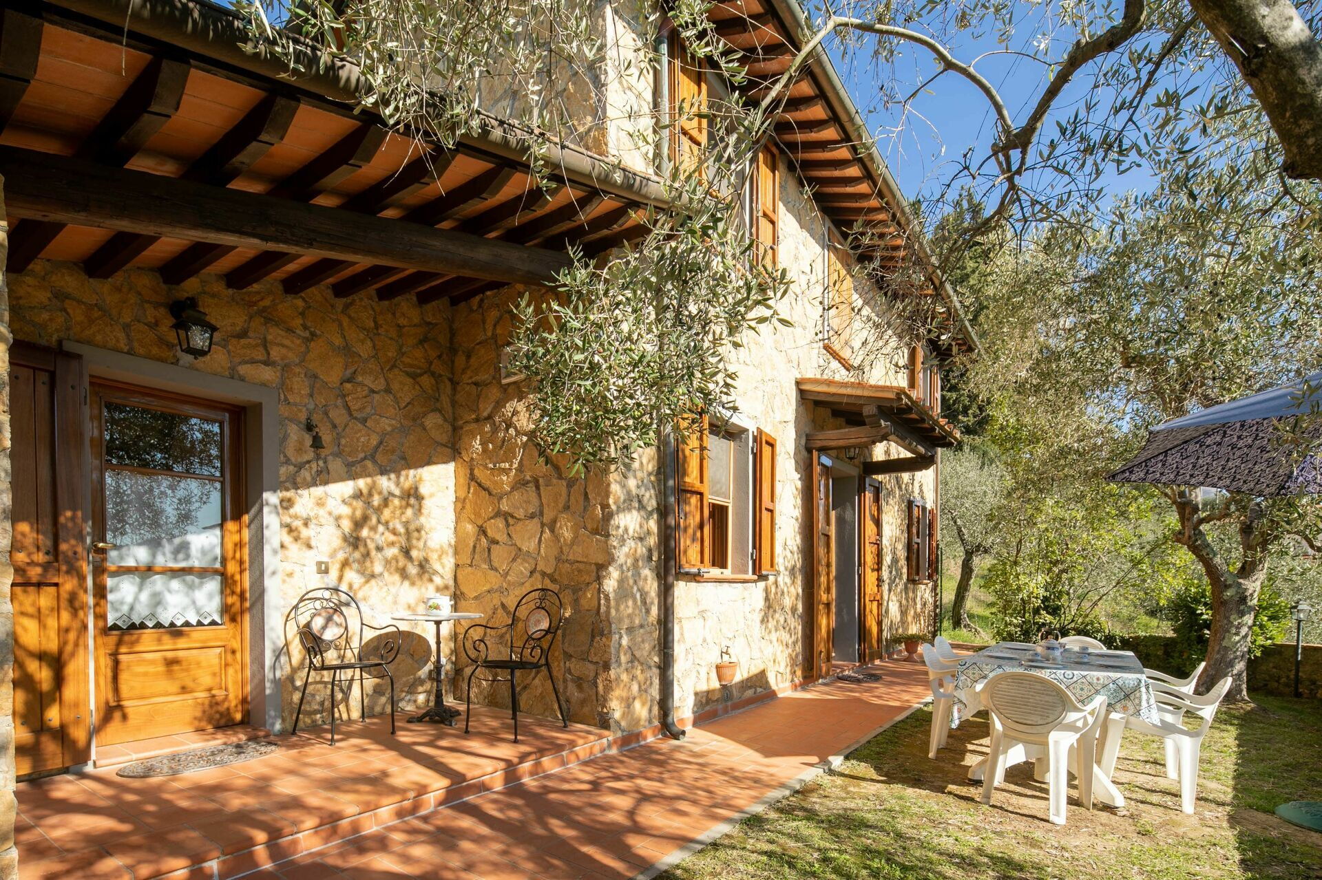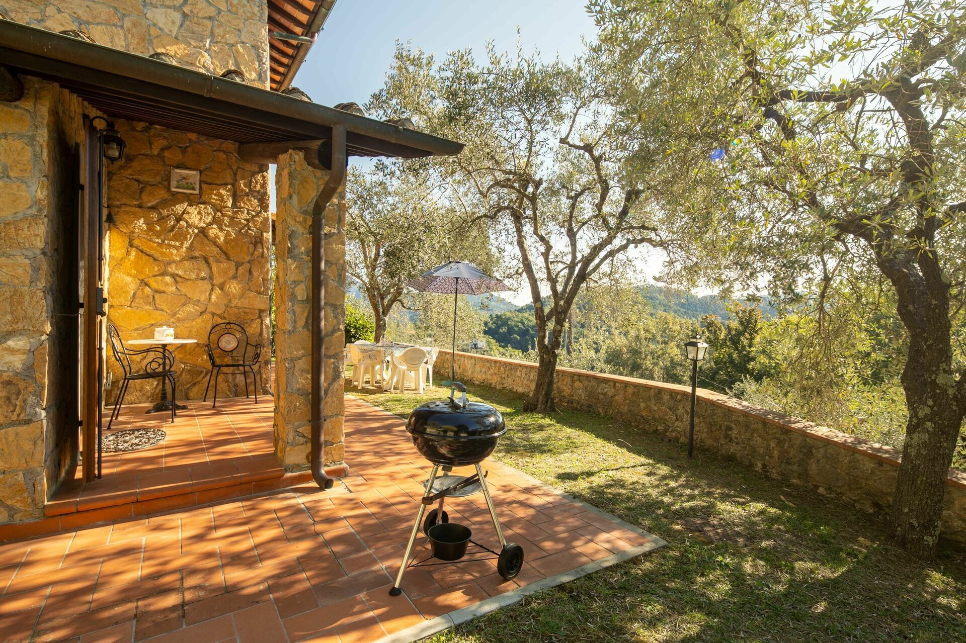 When you arrive you’ll find a beautiful clean well-maintained property with views of the hills ideal for a peaceful holiday in Tuscany. For your enjoyment you will find a private garden where you can unwind while enjoying a nice cold beverage after a busy day of visiting museums. A real benefit of renting a home, instead of multiple hotel rooms, is the ability to relax after a busy day of sightseeing with family and friends. Enjoy a meal together along with some local wine to finish the day. For your pleasure, on the grounds there is a patio and barbecue grill. Sharing a meal with friends and family is a huge part of the Tuscan culture. Take advantage of the kitchen to prepare meals using local produce while on your holiday. The kitchen includes coffee machine, microwave, toaster, stove and refrigerator, as well as, plenty of tableware and cutlery for up to four people. Dine 'al fresco' like a real Tuscan, the fully furnished veranda is the ideal setting to enjoy food, family and the beautiful Tuscan weather.