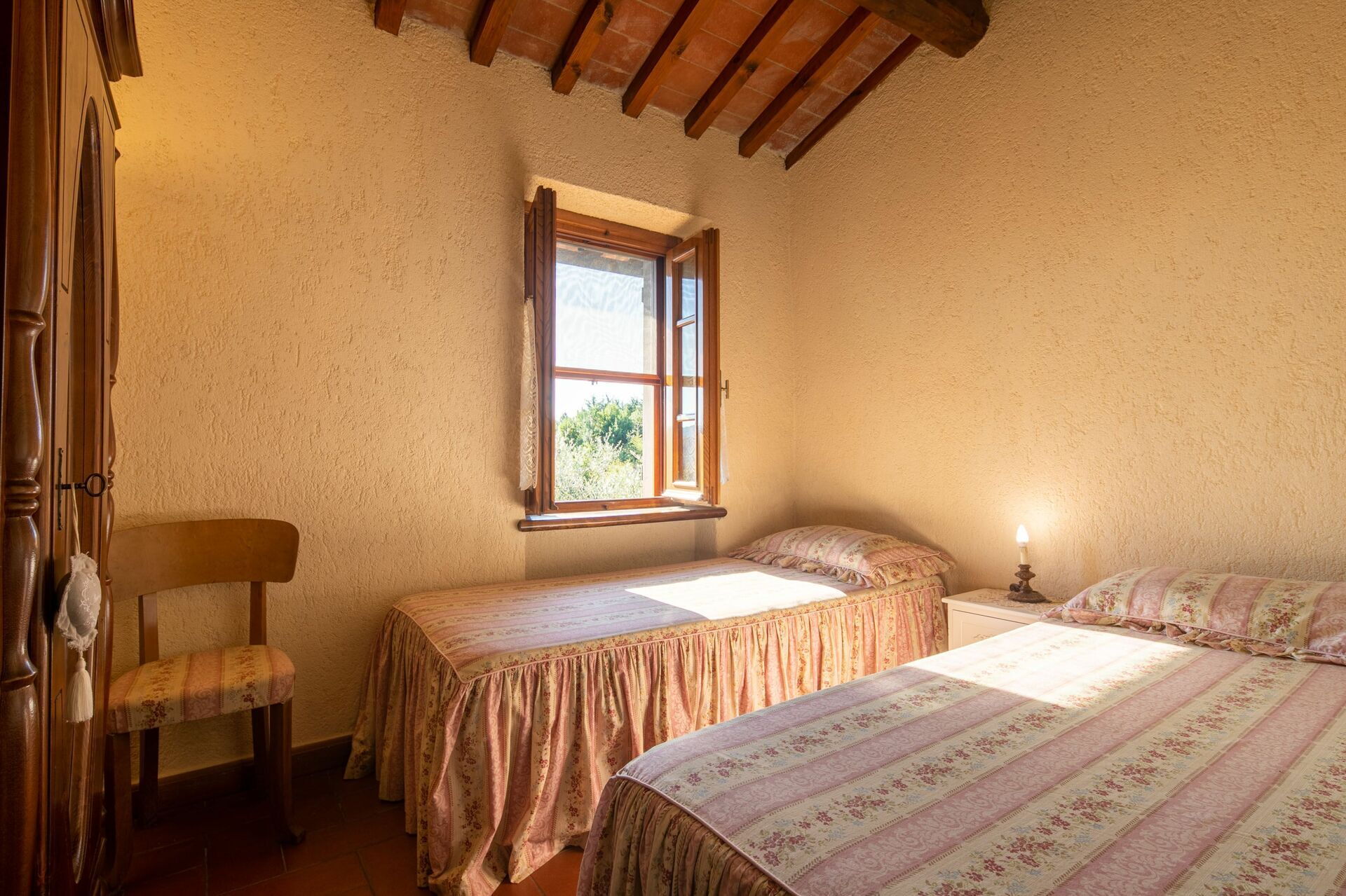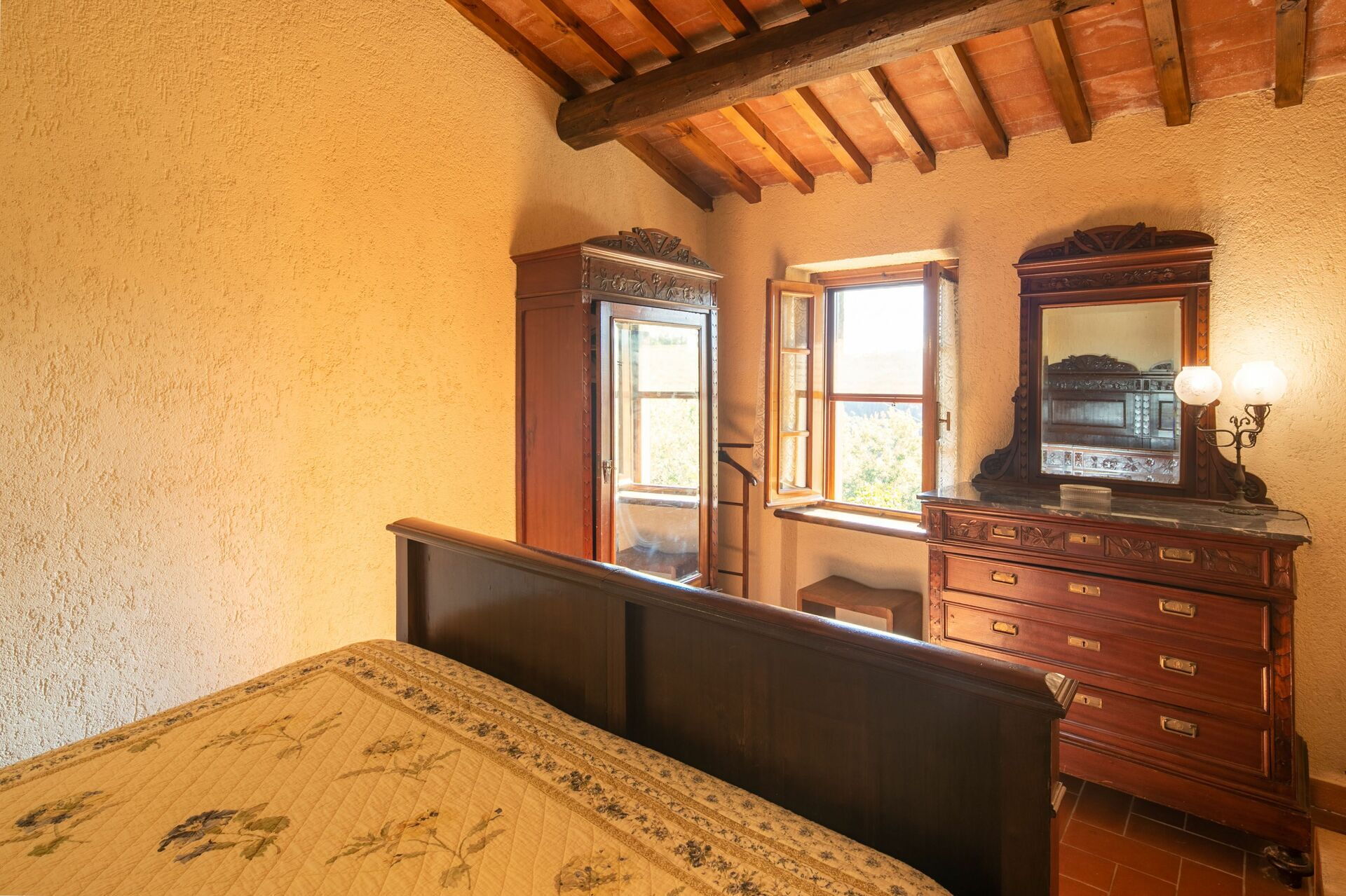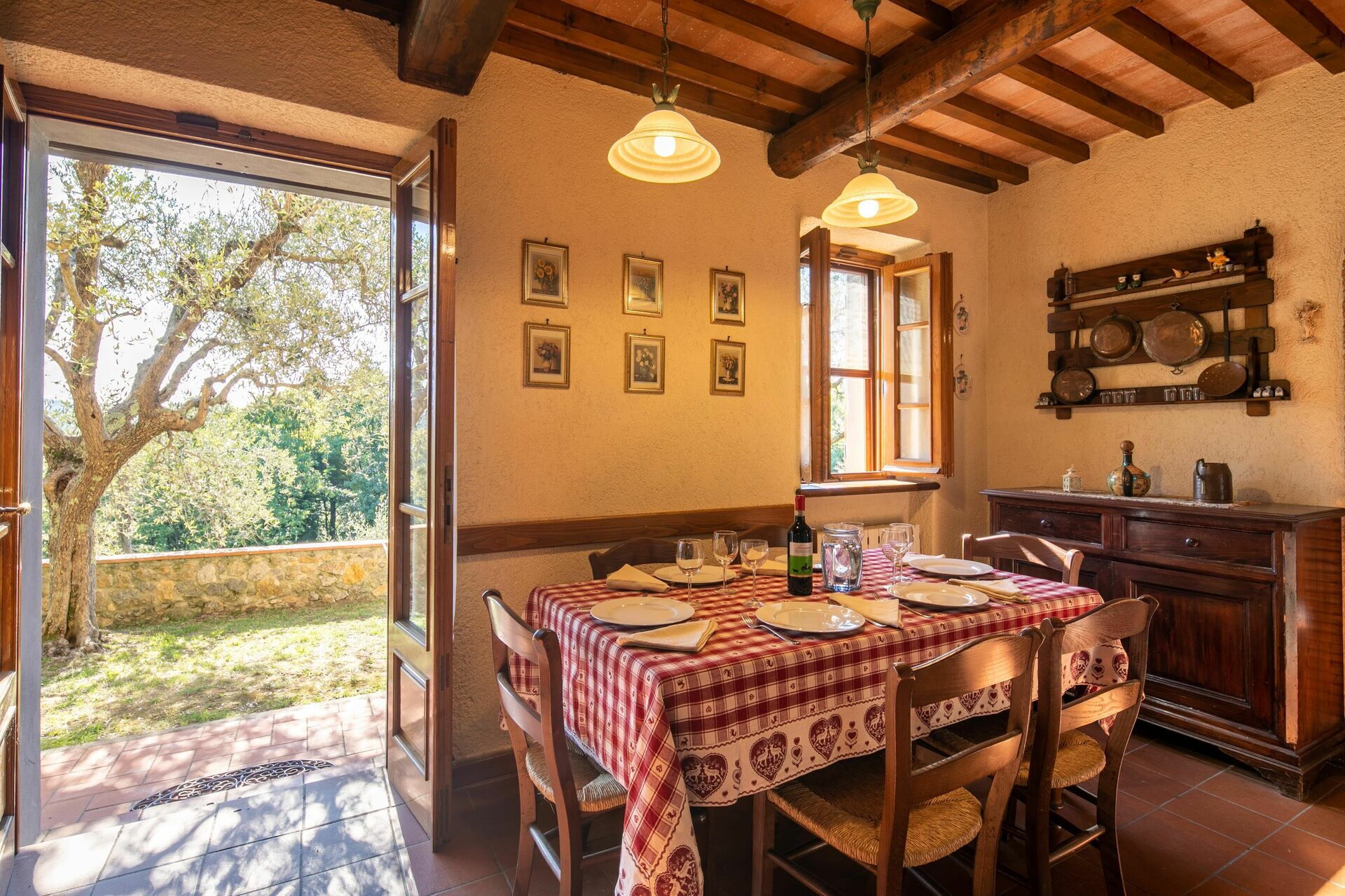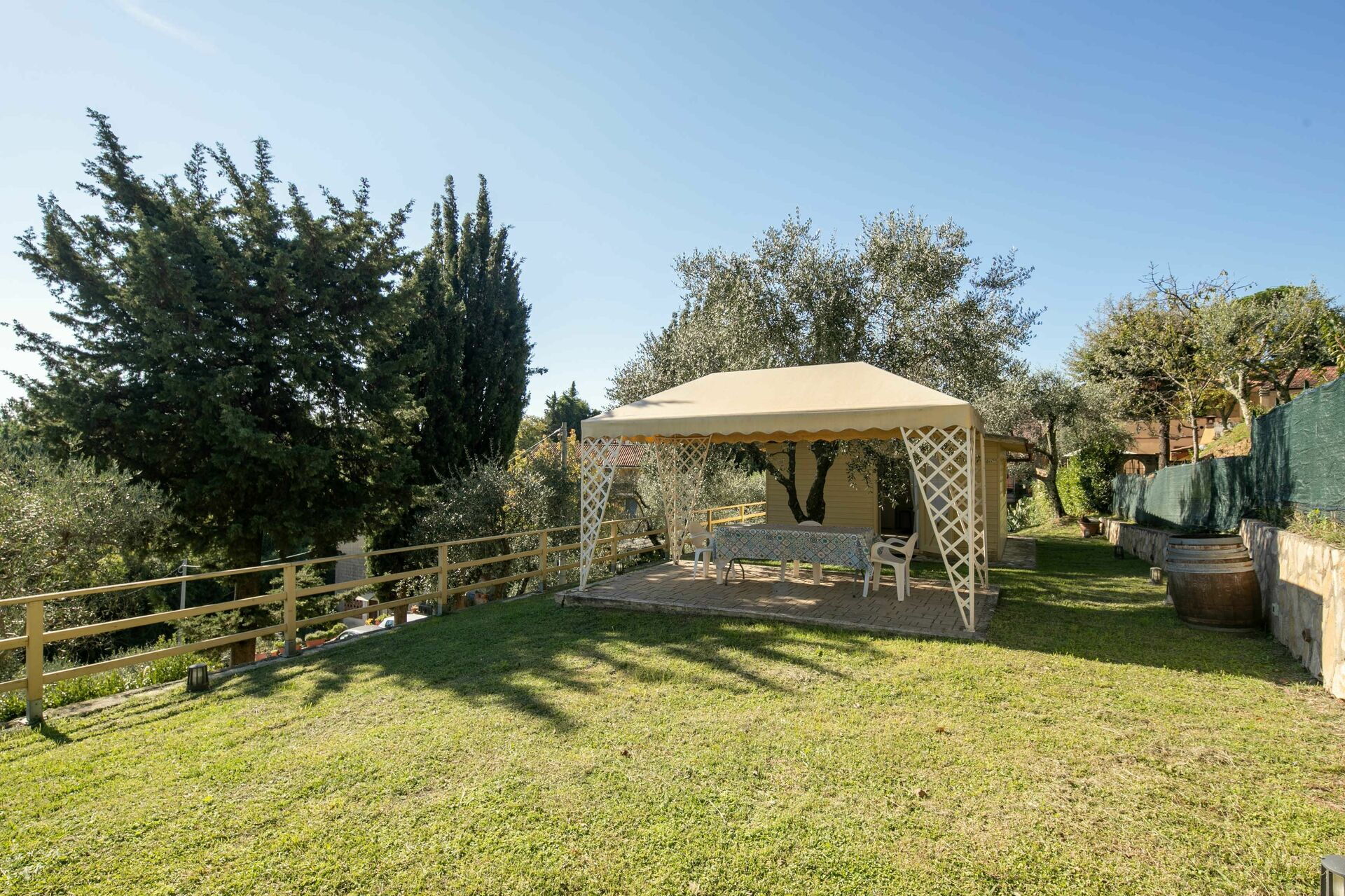 When you arrive you’ll find a beautiful clean well-maintained property with views of the hills ideal for a peaceful holiday in Tuscany. For your enjoyment you will find a private garden where you can unwind while enjoying a nice cold beverage after a busy day of visiting museums. A real benefit of renting a home, instead of multiple hotel rooms, is the ability to relax after a busy day of sightseeing with family and friends. Enjoy a meal together along with some local wine to finish the day. For your pleasure, on the grounds there is a patio and barbecue grill. Sharing a meal with friends and family is a huge part of the Tuscan culture. Take advantage of the kitchen to prepare meals using local produce while on your holiday. The kitchen includes coffee machine, microwave, toaster, stove and refrigerator, as well as, plenty of tableware and cutlery for up to four people. Dine 'al fresco' like a real Tuscan, the fully furnished veranda is the ideal setting to enjoy food, family and the beautiful Tuscan weather.