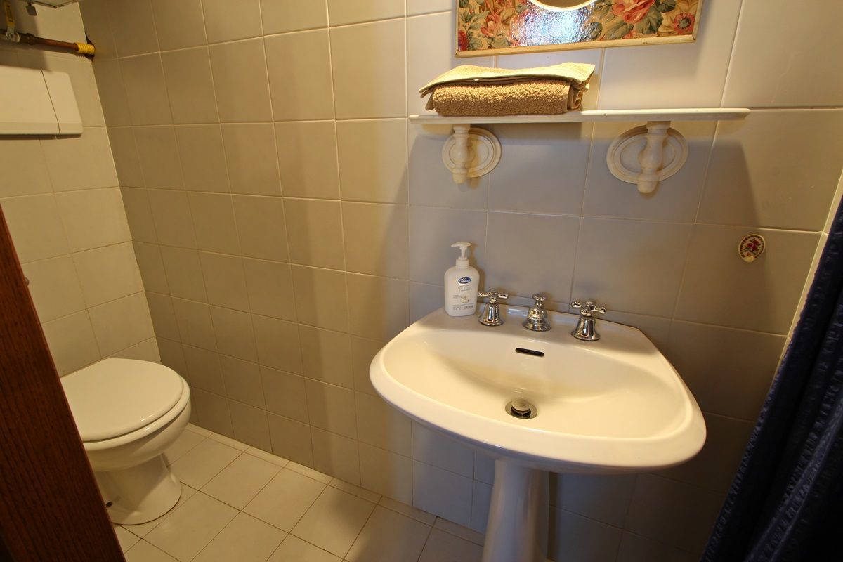 Bathroom: basin, toilet, bidet, shower.