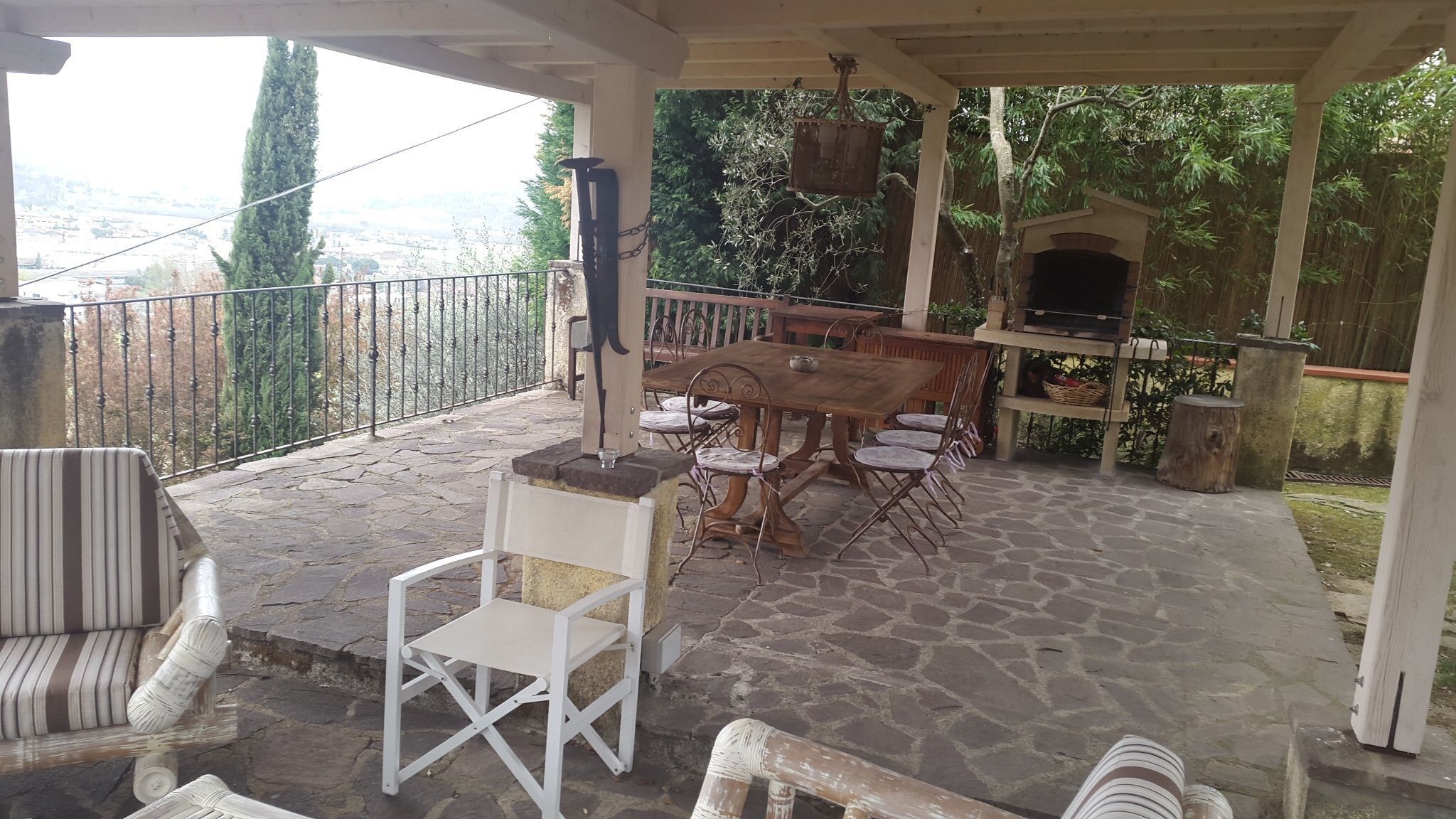 In the garden there is a barbecue and lovely wrought iron two gazebos furnished with table and chairs for dining al fresco whilst enjoying the essence of the Tuscan countryside.