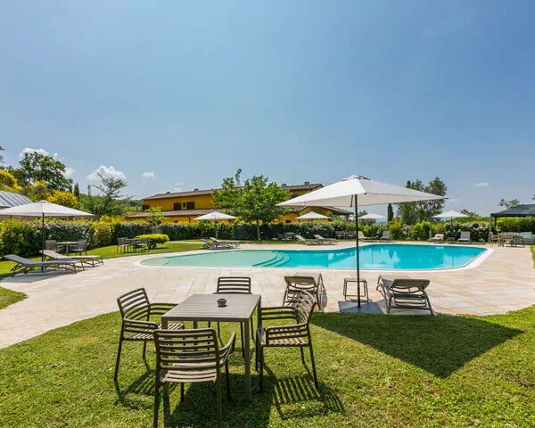 The outdoor spaces at Il Casale are designed to make the most of the property's sunny and elevated position. The fenced kidney-shaped swimming pool, measuring 16 x 8 meters with a depth ranging from 100 to 150 cm, is available seasonally from May to September, offering a refreshing escape during the warmer months. An outdoor shower is conveniently located nearby for use after a swim. The garden is furnished with comfortable outdoor furniture, ideal for relaxing in the open air and soaking in the sweeping countryside views. A barbecue area is also available, providing the perfect setting for al fresco dining and leisurely evenings under the Tuscan sky.