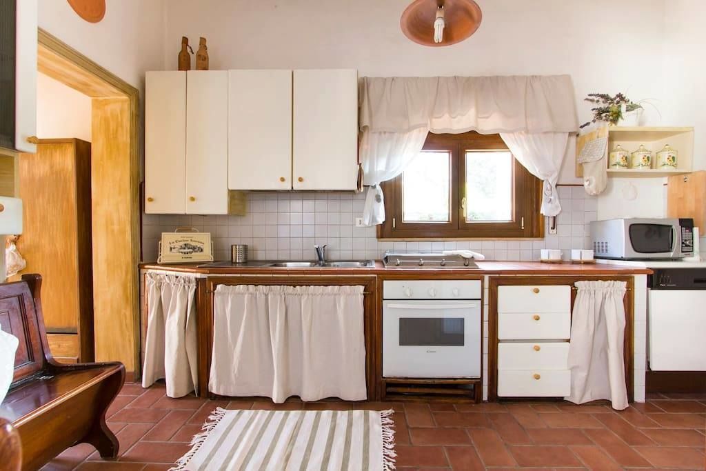 Boasting three bedrooms and four bathrooms and sleeping up to six guests in total, this is a spacious property where each person has plenty of room. While the extraordinary exterior is the initial selling-point for this remarkable villa, the interiors are also rather special indeed. They feature architectural delights and beautifully curated spaces including a double-height open-plan living room/kitchen, exposed old stone walls and brick arches, a spiral staircase, lots of arched windows and massive glass doors allowing you to take in the surrounding views, exposed-beam ceilings, terraces with views, and even showers with views (but don’t worry, you’re located in an elevated spot far above any neighbours, so you can admire them from the shower without concern).