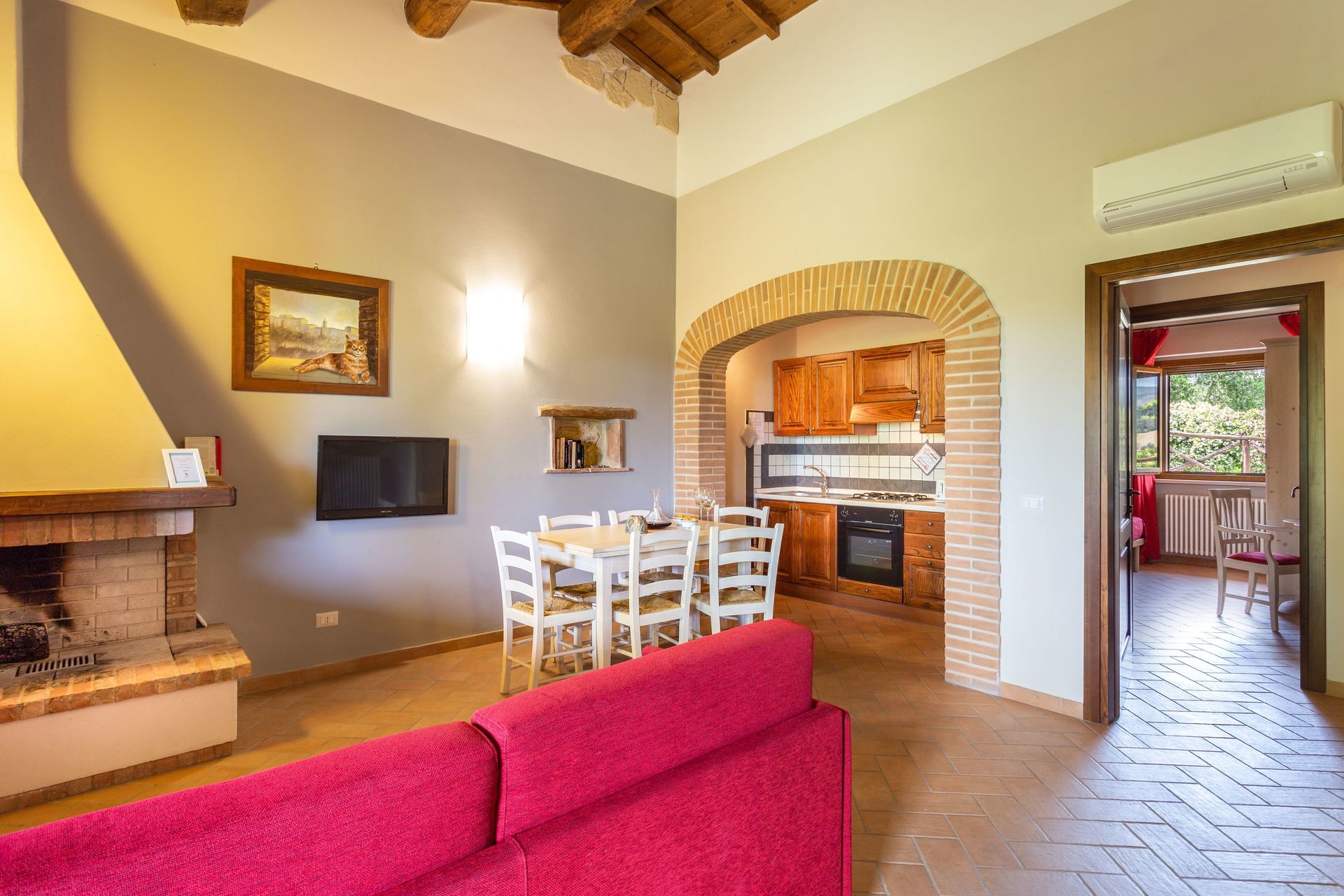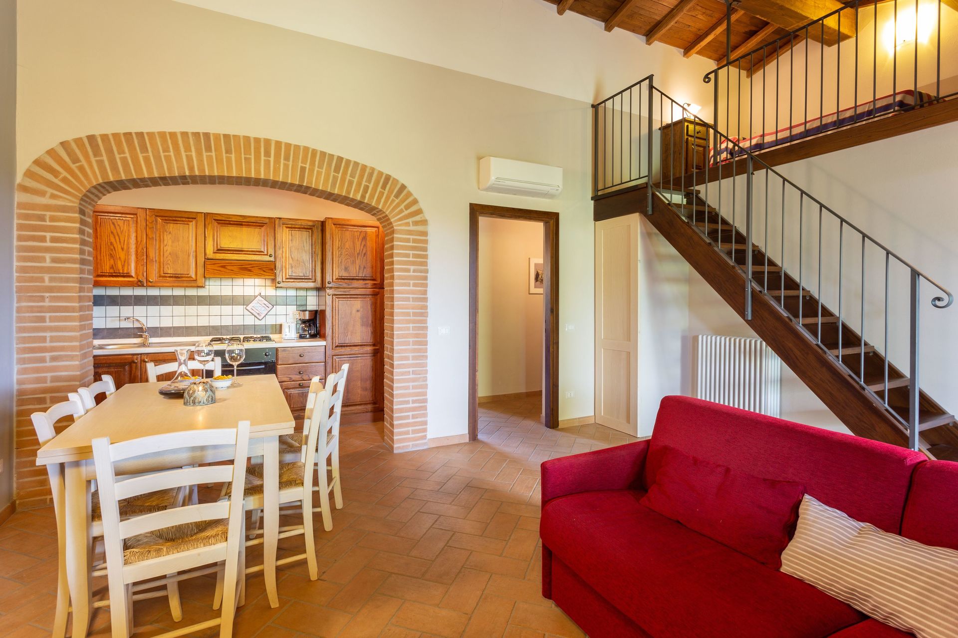 Dining with friends and family is a big part of the Italian culture. Take advantage of the kitchen to prepare meals using local produce while on your vacation. The kitchen includes coffee machine, toaster, stove and refrigerator, as well as, plenty of tableware and cutlery for up to six people.