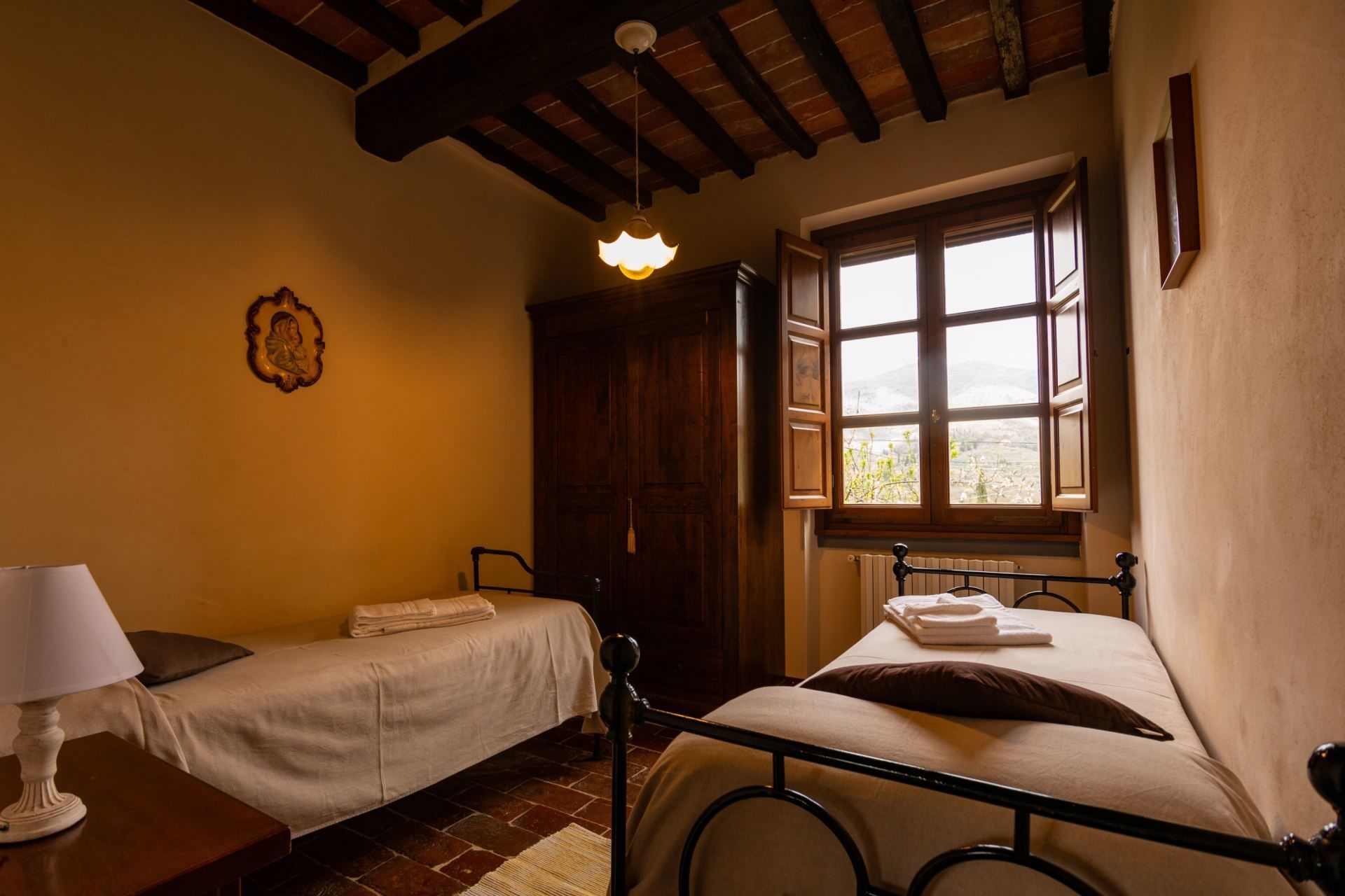 In a few minutes’ drive from the house you can easily reach Castiglion Fiorentino, Cortona, Arezzo and Lake Trasimeno, ideal destinations for day trips, to alternate with relaxing days at the swimming pool (size 5x10 m, depth 1,20-2,20 m - open from 01st May to 30th September) and funny tennis and table tennis tournaments. The tennis court is located a few hundred meters from the house and is shared only with the guests of the other two houses VILLA DEGLI OLIVI and VILLA GIOTTO.