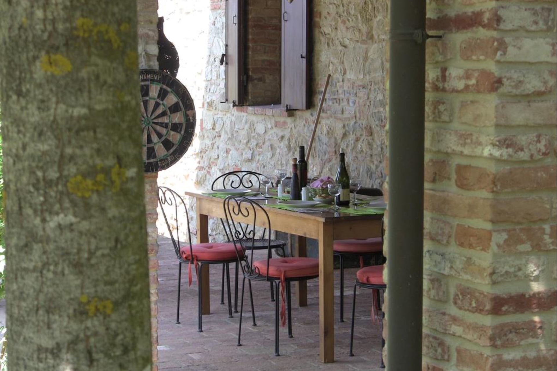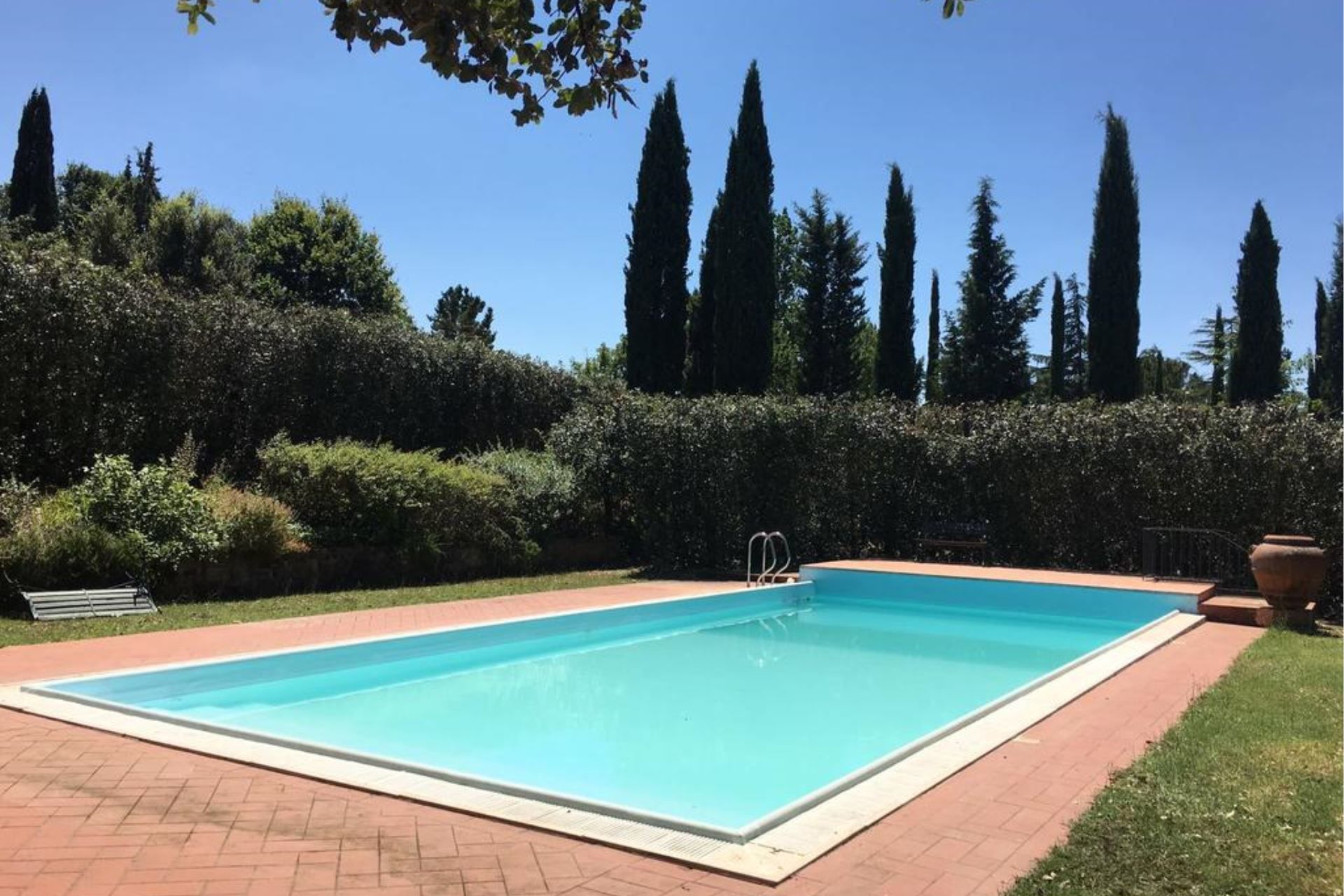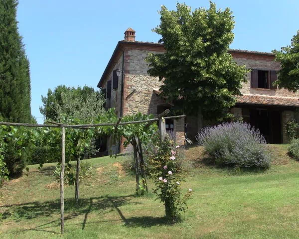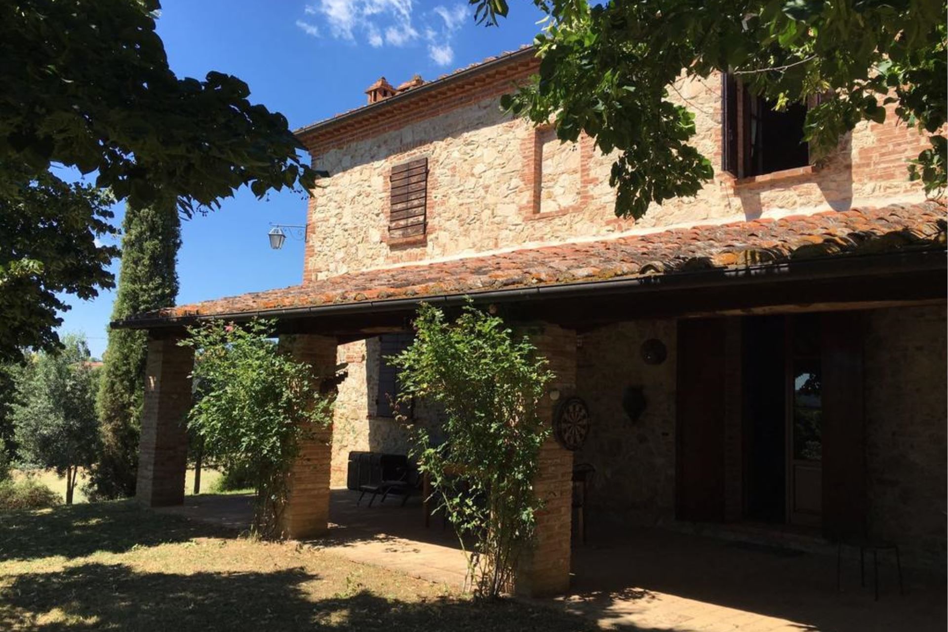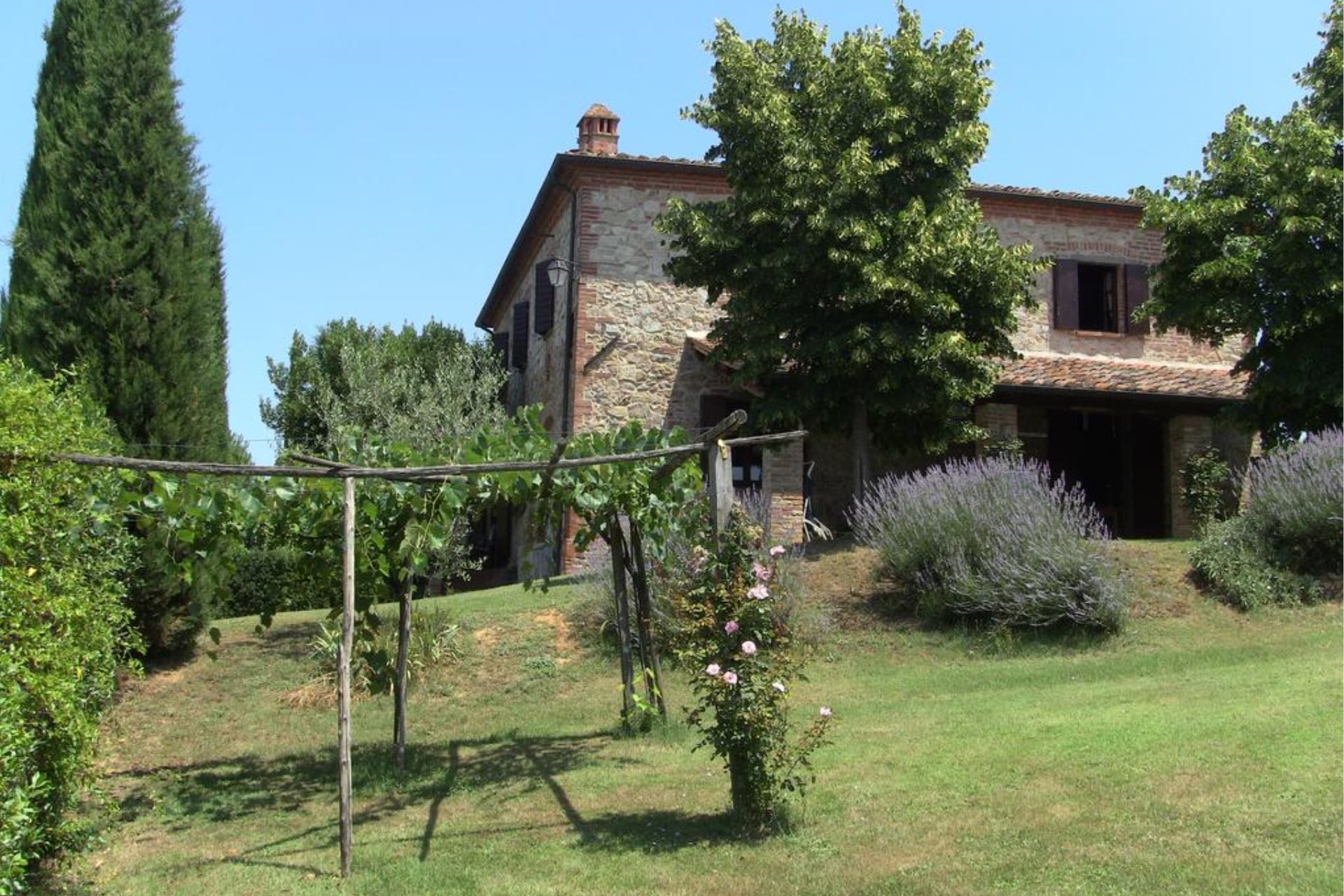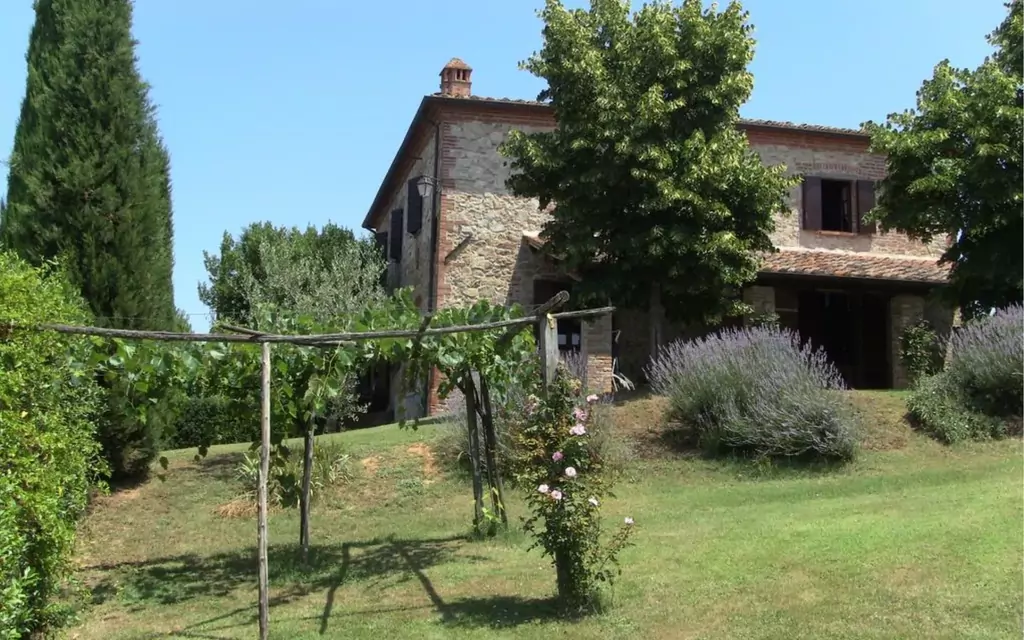 The villa, the large garden and pool with wide equipped gazebo. The villa, made of bricks and stones and in the typical Tuscan style, is endowed with a fresh and shadowed garden a big wooded park, a 10x4 mt (depth mt 1,20-1,40) swimming pool with a wide gazebo for shadow and refreshment and a large porch equipped to eat outside and relax in front of the Tuscan landscape.