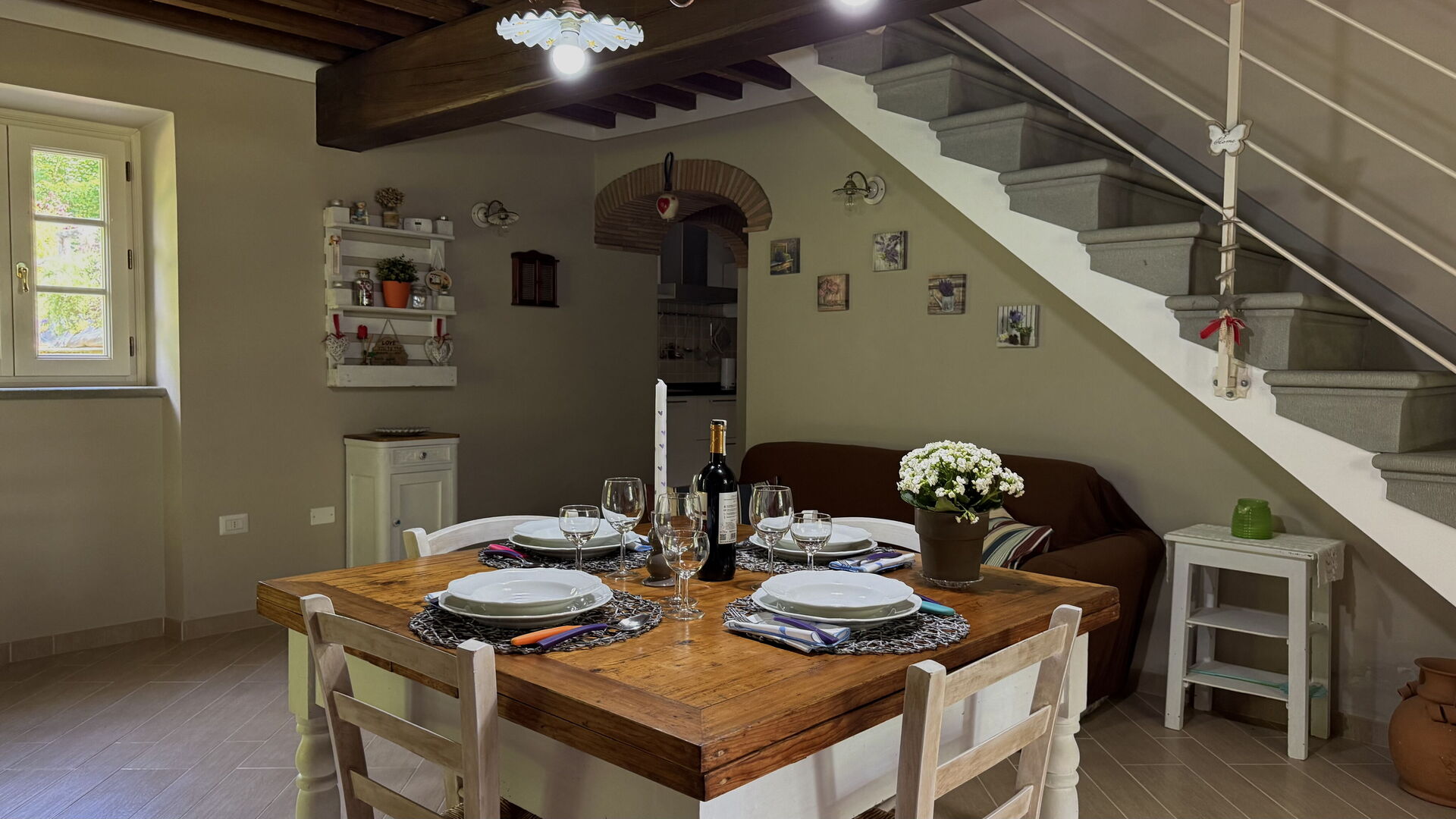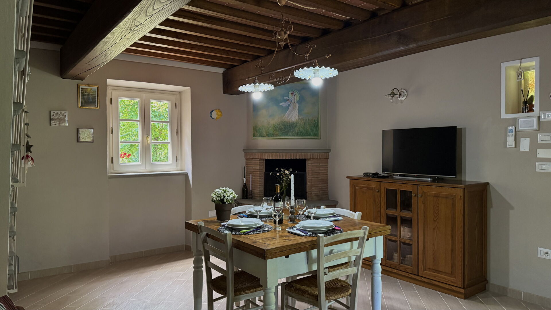 After arriving at Anfora!! you’ll find a beautiful clean well-maintained property with views of the hills and the mountains ideal for a splendid vacation in Tuscany. For your pleasure you will find a private pool where you can relax while enjoying a nice cold beverage after a hectic day of visiting museums. Dining with friends and family is a huge part of the Tuscan culture. Take advantage of the kitchen to prepare meals using local produce while on your holiday. The kitchen includes toaster, stove and refrigerator, as well as, plenty of tableware and cutlery for up to six people.