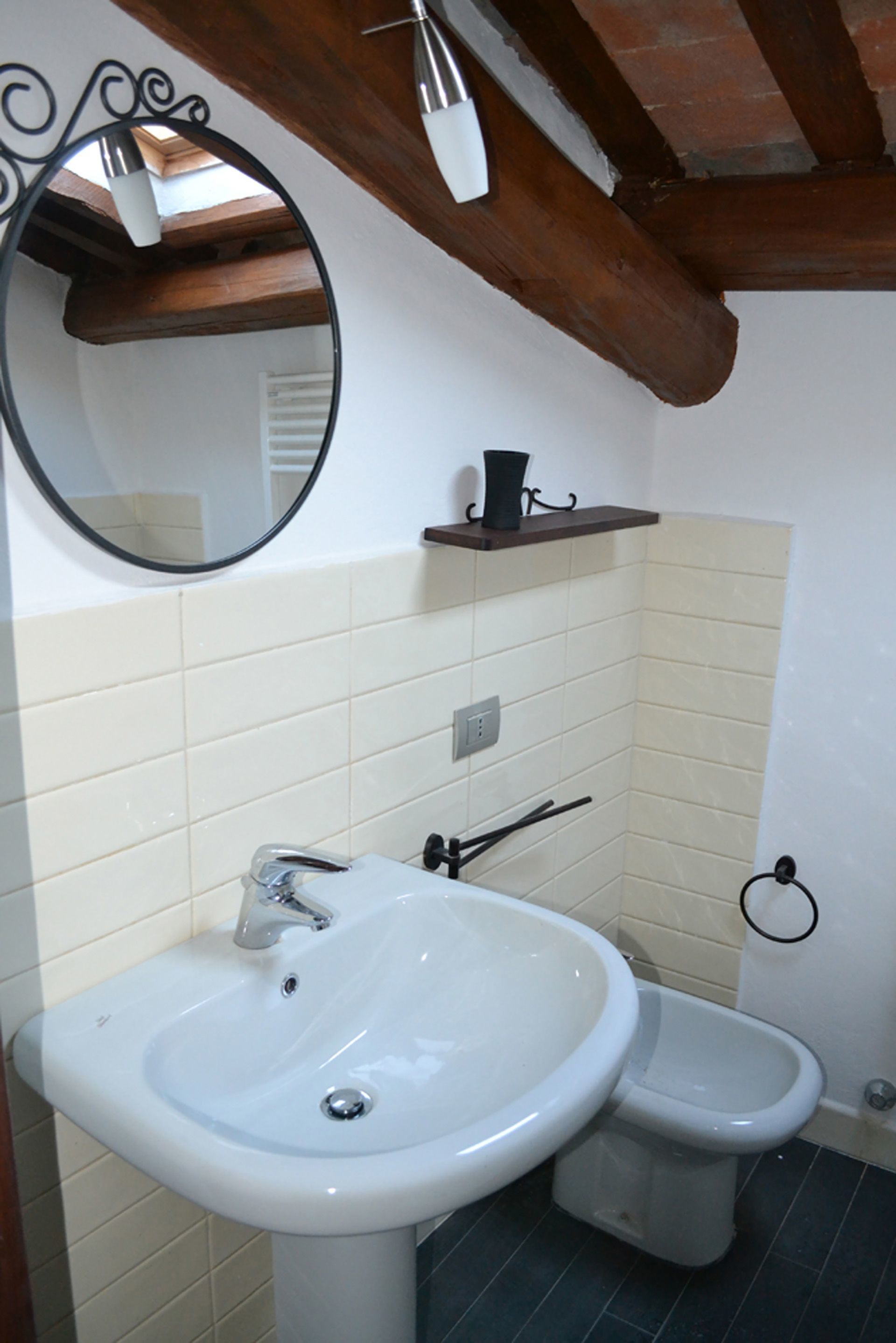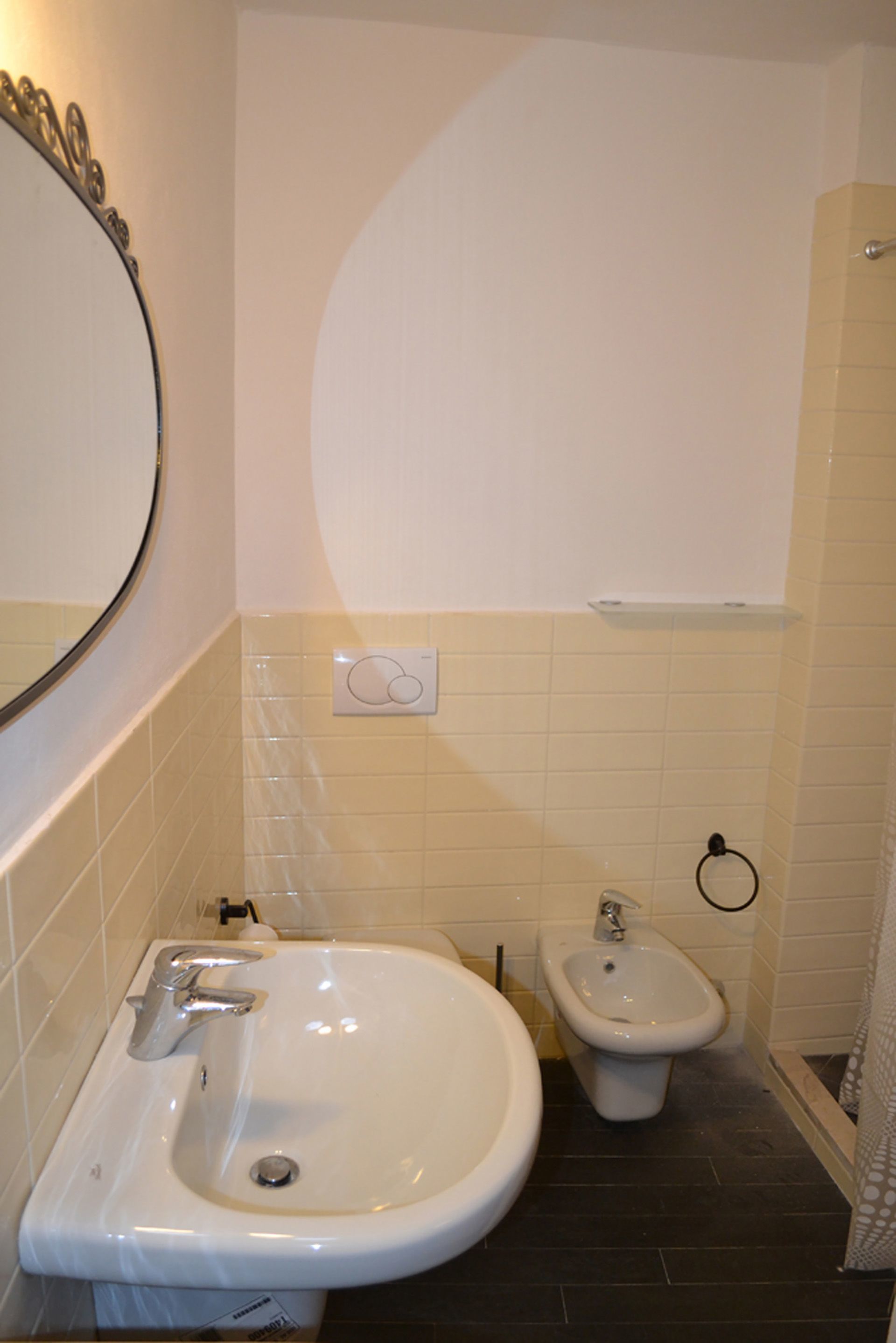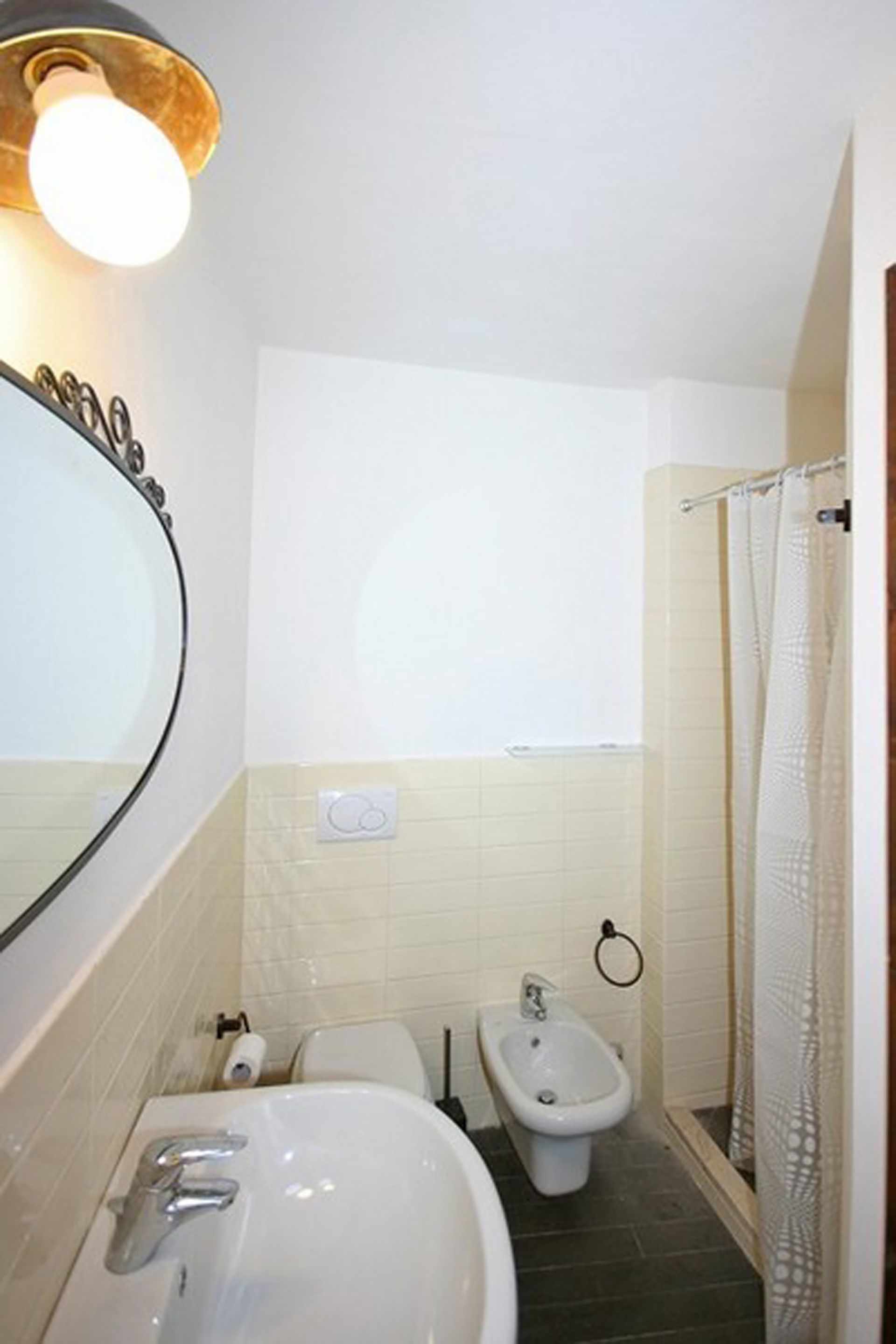 Bathroom: basin, toilet, bidet, shower, hairdryer.