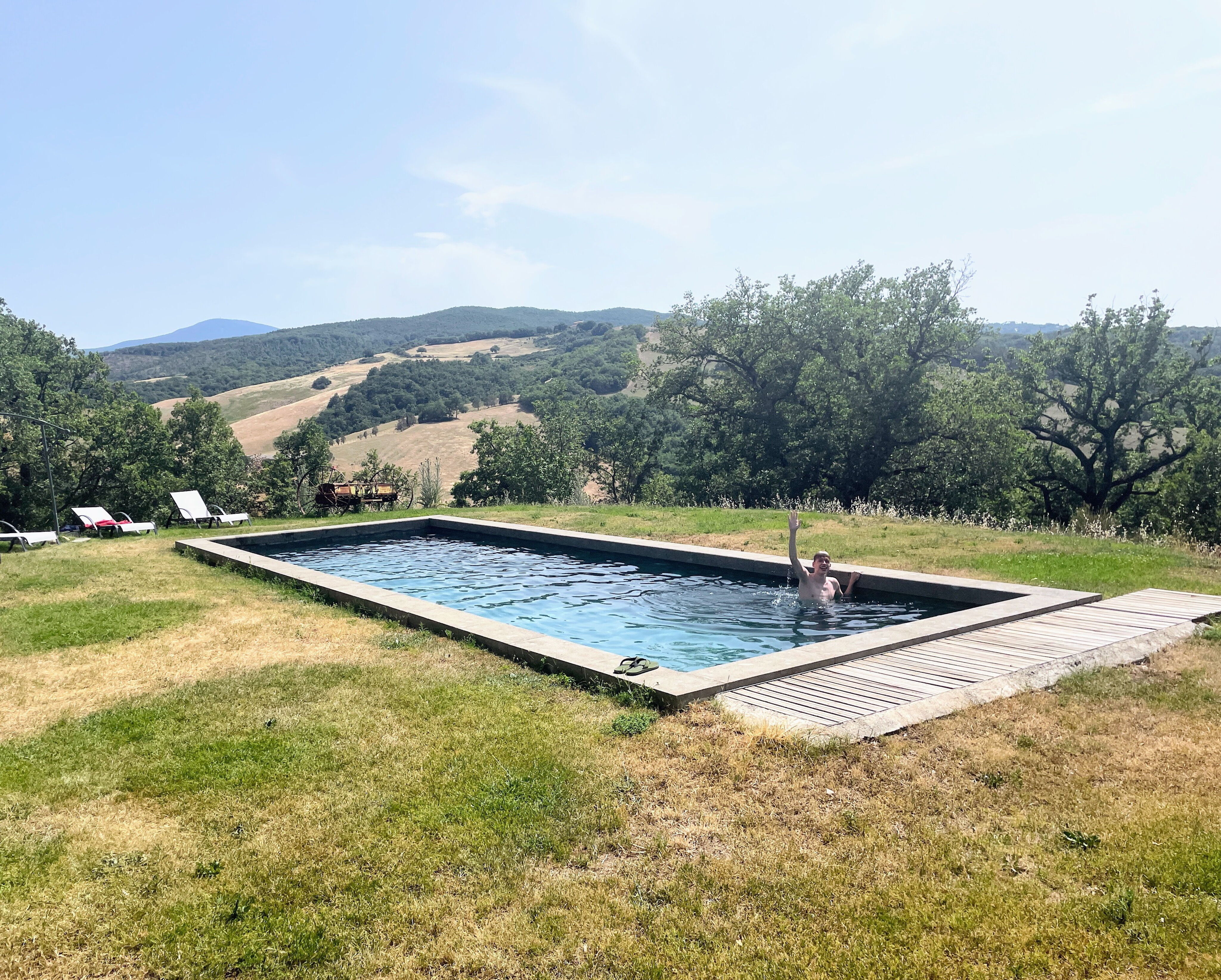 [English translation courtesy of Easy Reserve] Excellent stay. Warm welcome from Luc and Jacqueline. The house is beautiful and full of amenities (underfloor air conditioning, natural pool, well-equipped kitchen). The location is perfect for visiting the villages of Val d'Orcia and Siena.