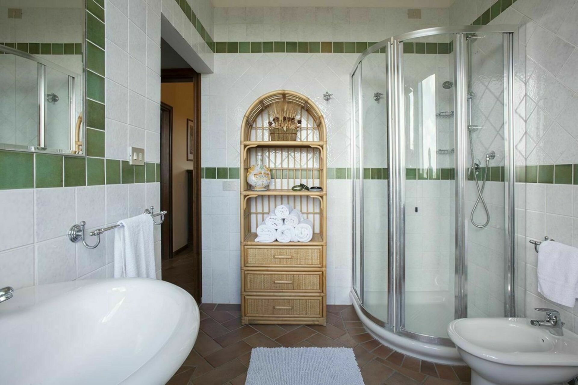 Bathroom 1: basin, toilet, bidet, shower.