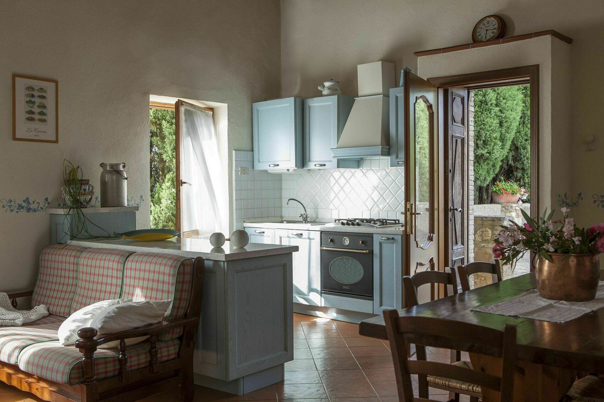 Access to ¨Tramonto ¨ (5 people/100smq) is through the building’s main entrance (used by all four apartments) with the apartment’s private entrance situated on the first floor to the left, opposite the entrance to Proneta 2.