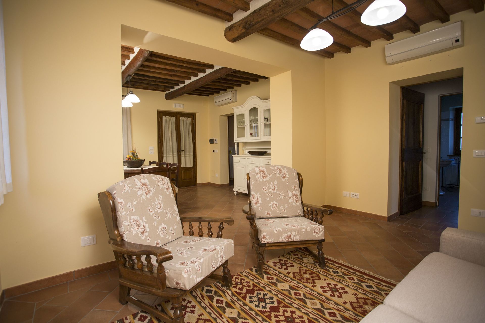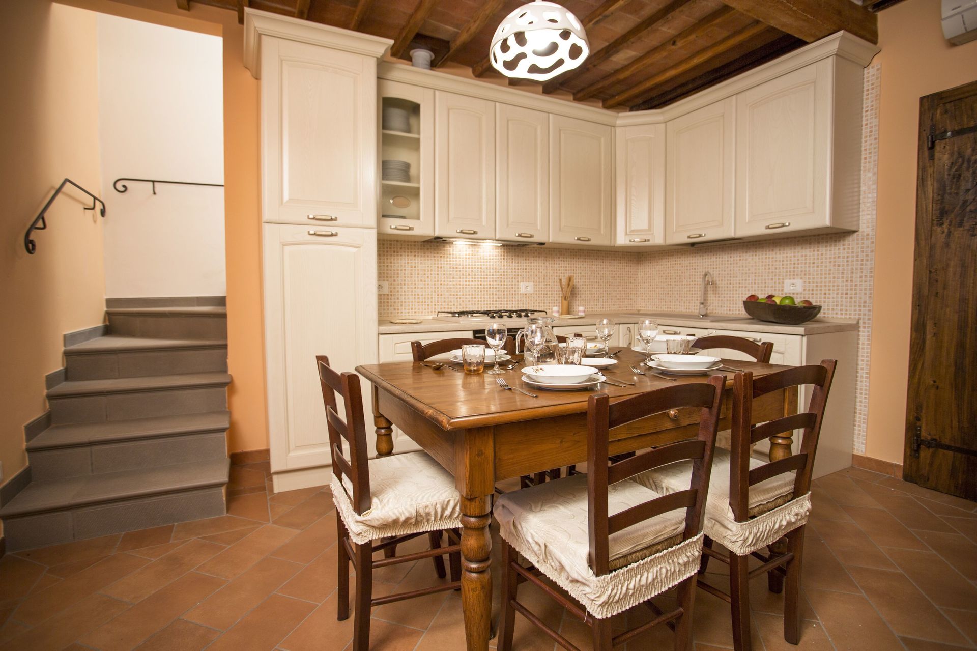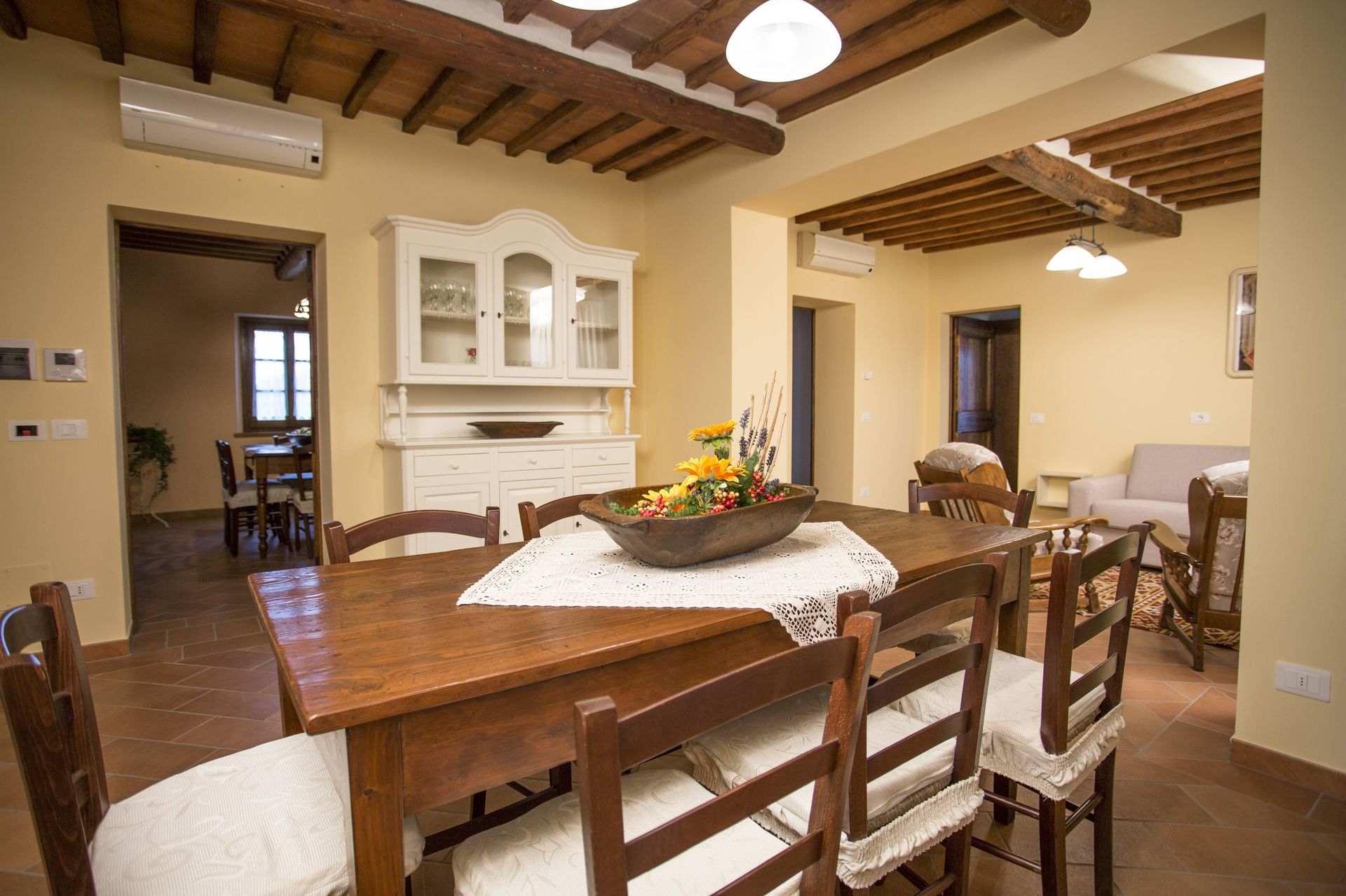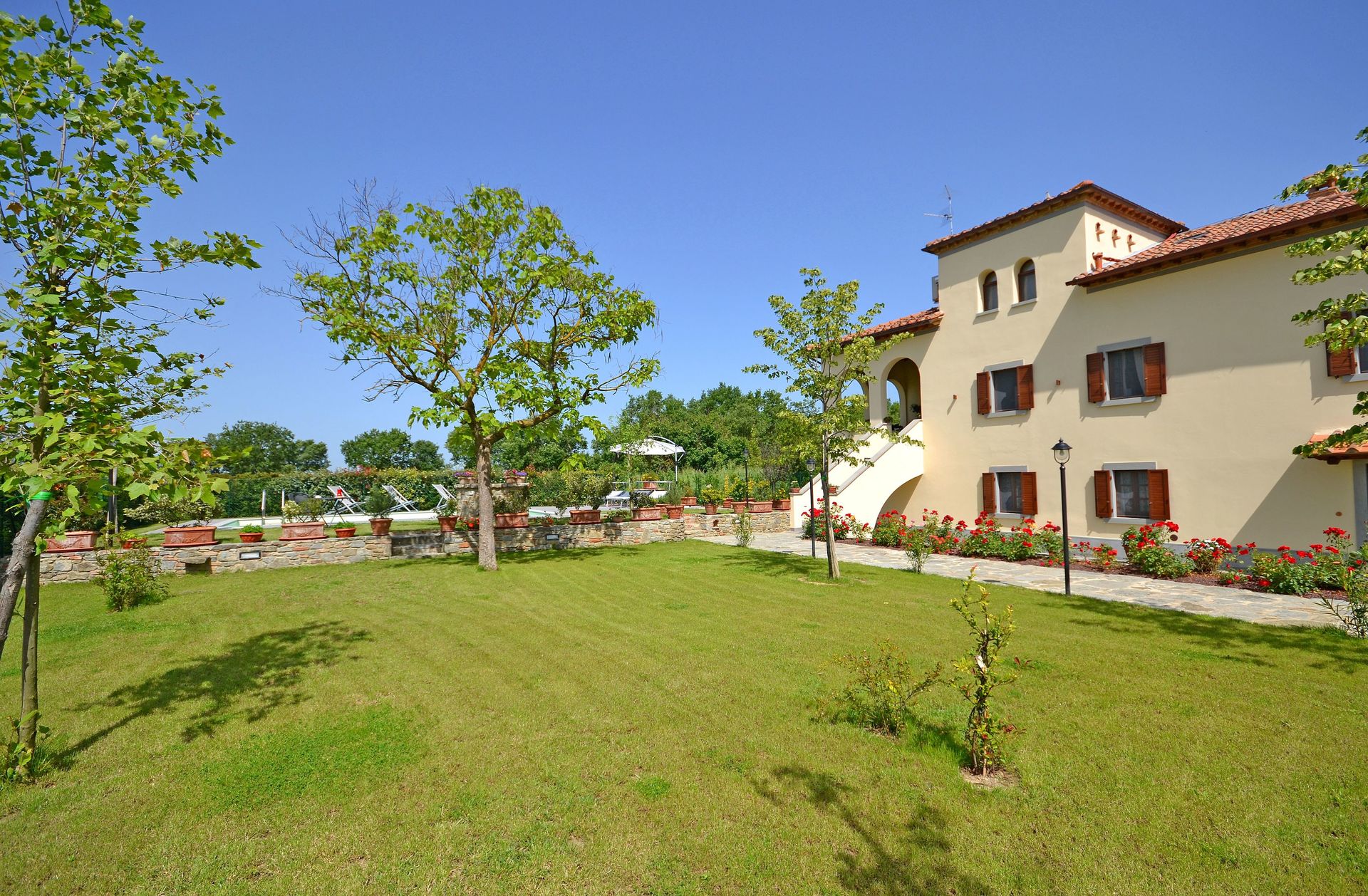 After arriving you’ll find a lovely clean well-maintained property with views of the hills perfect for a splendid vacation in Tuscany. After a busy day of shopping, spend some time with friends and family poolside enjoying a glass of wine - a perfect way to unwind at the end the day. Dining with friends and family is a big part of the Tuscan culture. Take advantage of the well-equipped kitchen to prepare meals using local produce while on your vacation. The kitchen includes coffee machine, microwave, toaster, stove and refrigerator, as well as, plenty of tableware and cutlery for up to ten people. Dine 'al fresco' like a real Tuscan, the fully furnished veranda is the ideal setting to enjoy food, family and the beautiful Tuscan weather.