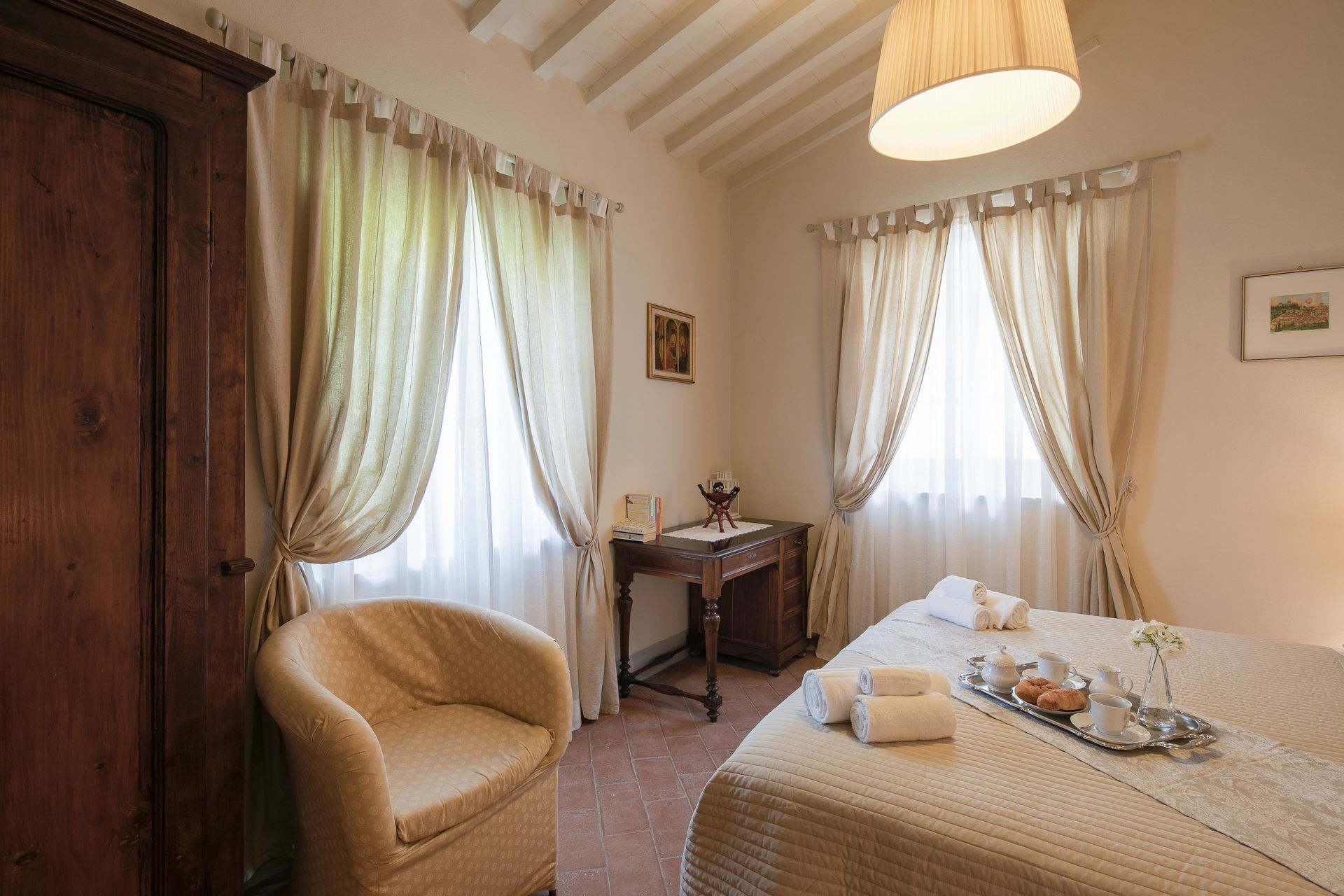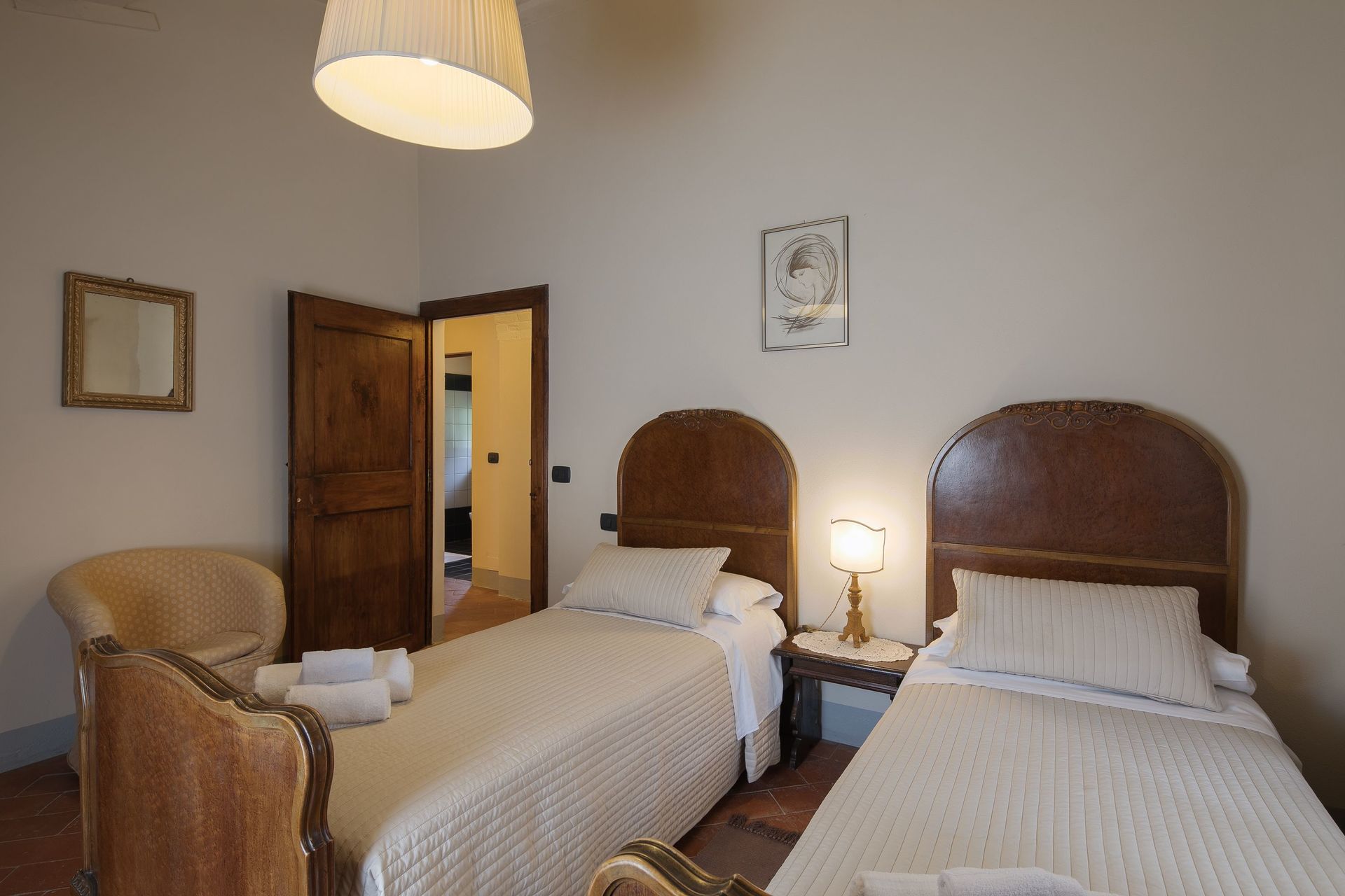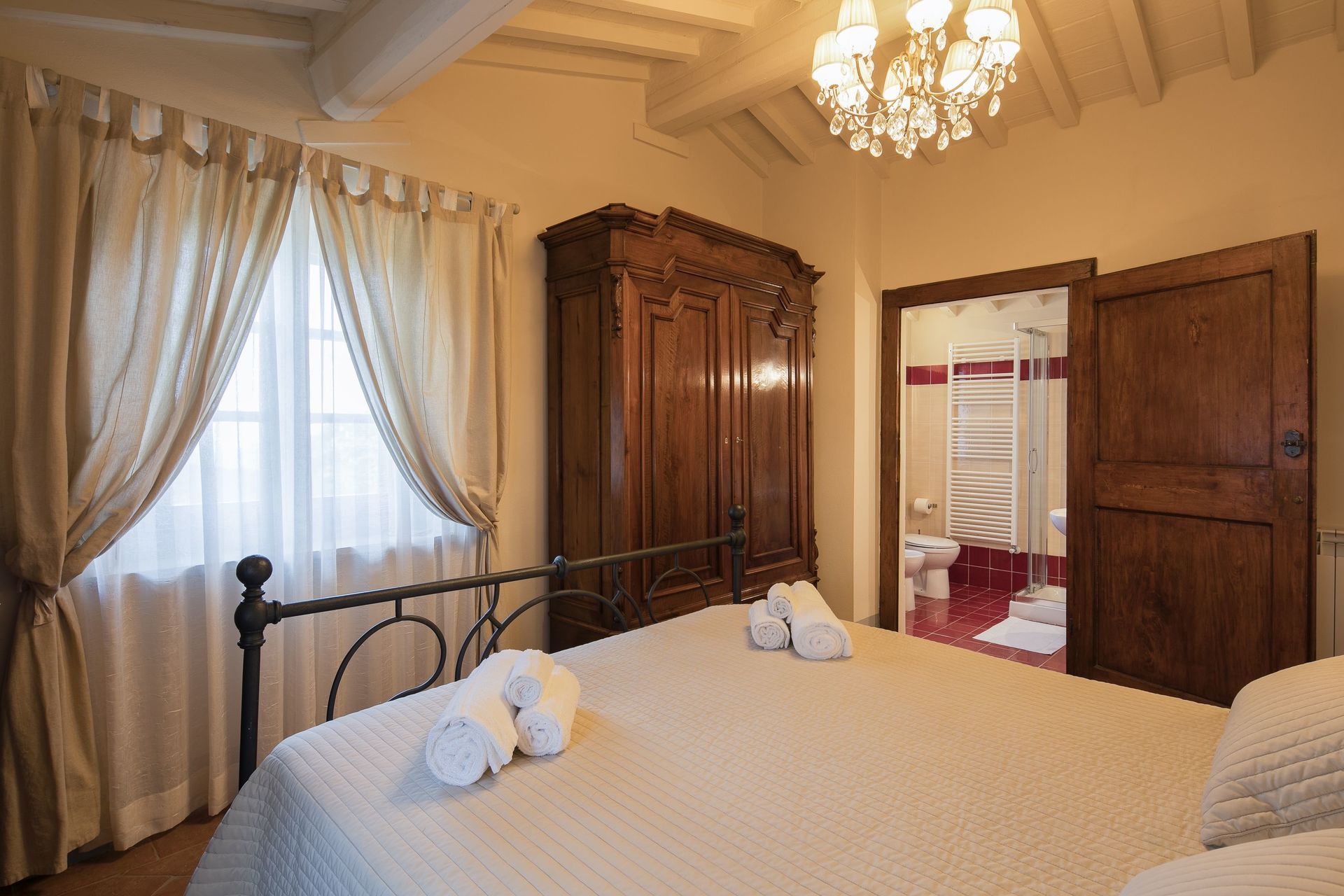 Very clean great owners had a very well stocked kitchen no air conditioning but it cooled way down at night super comfortable. 30 minutes from Cortona but we still loved it. Loved the restaurant on site you need reseverations.