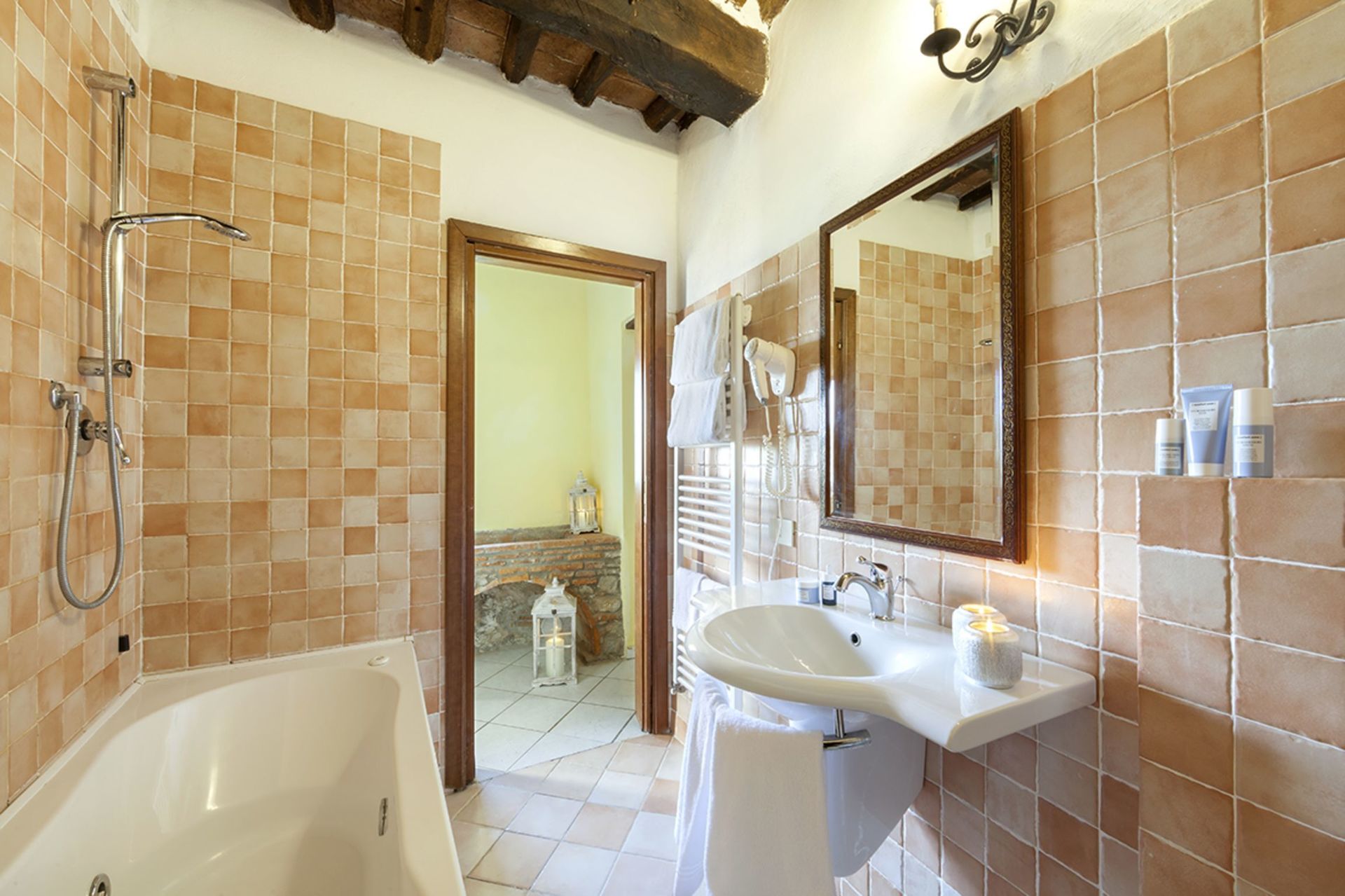 Bathroom: whirlpool bathtub, basin, toilet, bidet, shower.