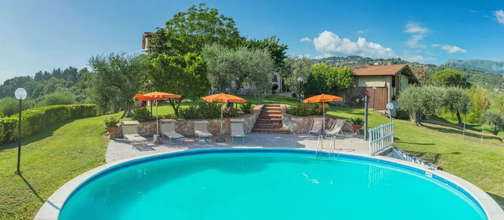 Nestled among the rolling hills of Massarosa, in the heart of Tuscany, Italy, Villa Le Casette is a recently renovated rustic villa that offers a breathtaking panoramic view of the Versilia coast. Set within a generous private estate, this detached property is surrounded by trees, meadows, a flower garden, an olive grove, and an orchard, creating a serene and immersive natural setting. The villa enjoys an exceptionally peaceful position while remaining well connected to the road network, allowing convenient access to the most celebrated cities of Tuscany. A private round swimming pool, available seasonally from May 13th to September 30th, invites you to relax and unwind in complete privacy. The expansive yard surrounding the property enhances the sense of space and seclusion, while on-site parking ensures a comfortable and practical stay from the moment of your arrival.