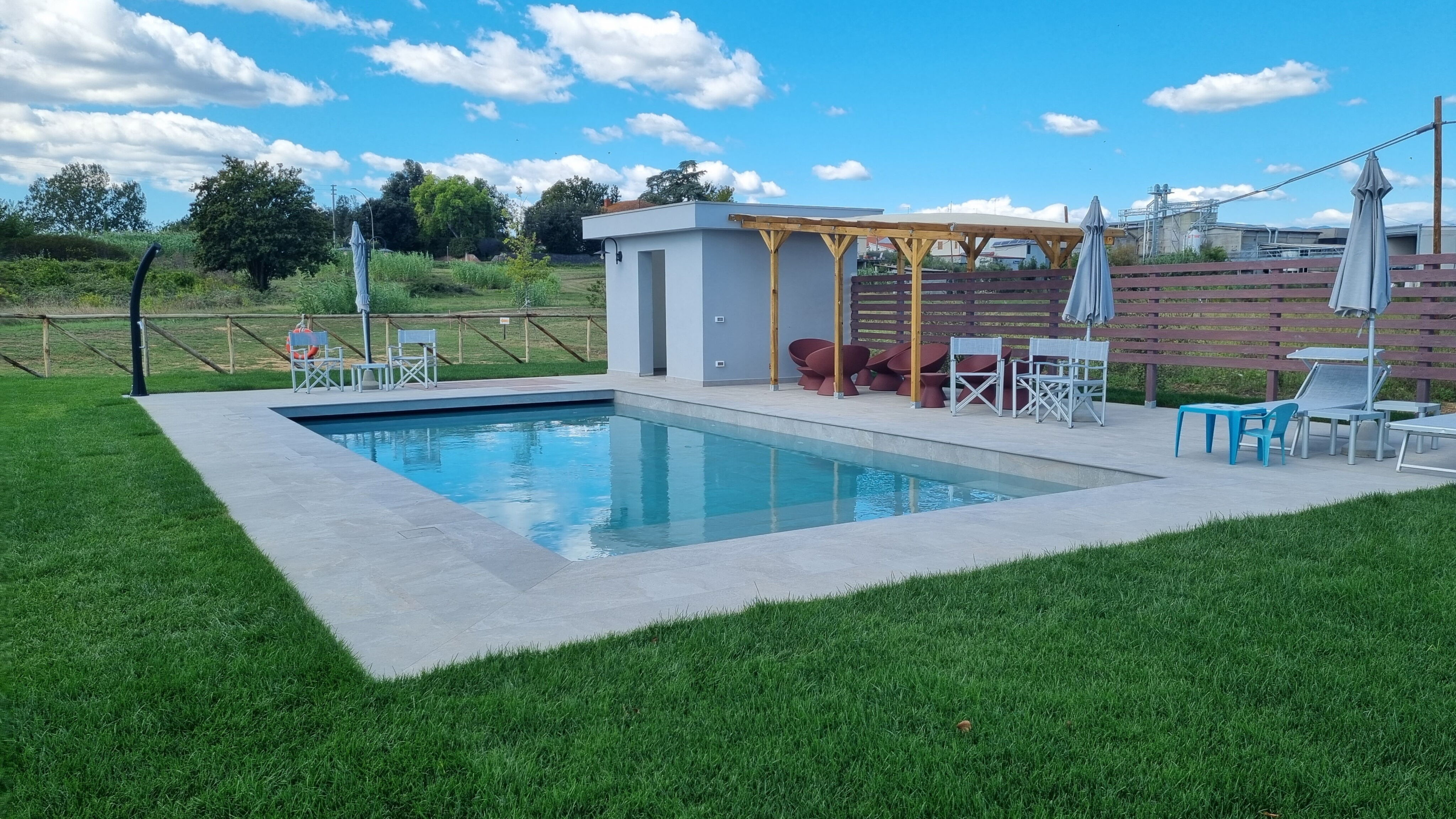 Garden (6000 m2): swimming pool (length: 7m, width: 4m, depth: 1.2m, max. depth: 1.2m, min. depth: 1.2m), WIFI internet, barbecue, al fresco dining, dining table (people: 12), garden furniture, terrace furniture, sunbed, enclosed property, children's playground, football pitch 5vs5.