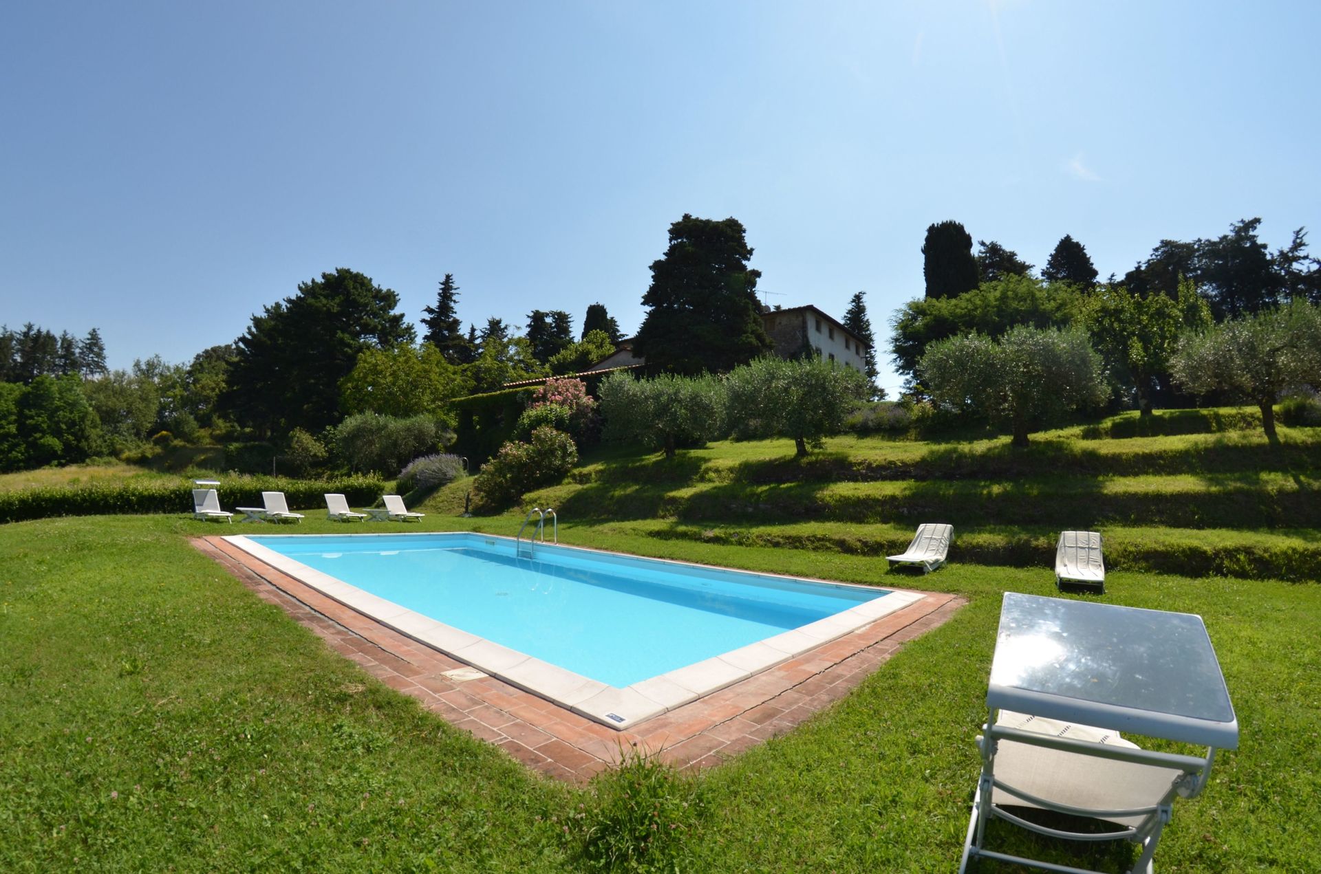 [English translation courtesy of Easy Reserve] 20 minutes from Lucca, beautiful traditional property full of charm perfectly equipped in a sumptuous setting and the view no less idyllic. It is really nice. Garden sported with a lot of taste and very well maintained. Swimming pool very nice 1.50 m deep along the entire length. If you are a contemporary lover, go your way. Although you will certainly spend most of your time outdoors for meals or reading in the shade of olive trees or under the arbor at the end of the pool. The decor becomes completely incidental.
