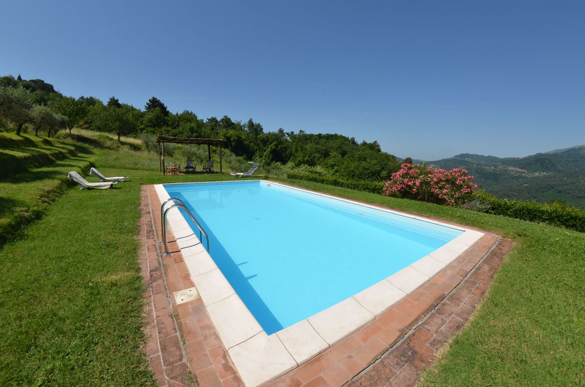 A 20 minutes de Lucca, magnifique propriété traditionnelle pleine de charme parfaitement équipée dans un cadre somptueux et à la vue non moins idyllique. C'est vraiment beau. Jardin arboré avec beaucoup de goût et très bien entretenu. Piscine très agréable d'1,50 m de profondeur sur toute la longueur. Si vous êtes plutôt amateur de contemporain.. passez votre chemin. Quoique vous passerez très certainement le plus clair de votre temps à l'extérieur pour les repas ou encore pour lire à l'ombre des oliviers ou sous la tonnelle au bout de la piscine. La déco devient alors tout à fait accessoire.