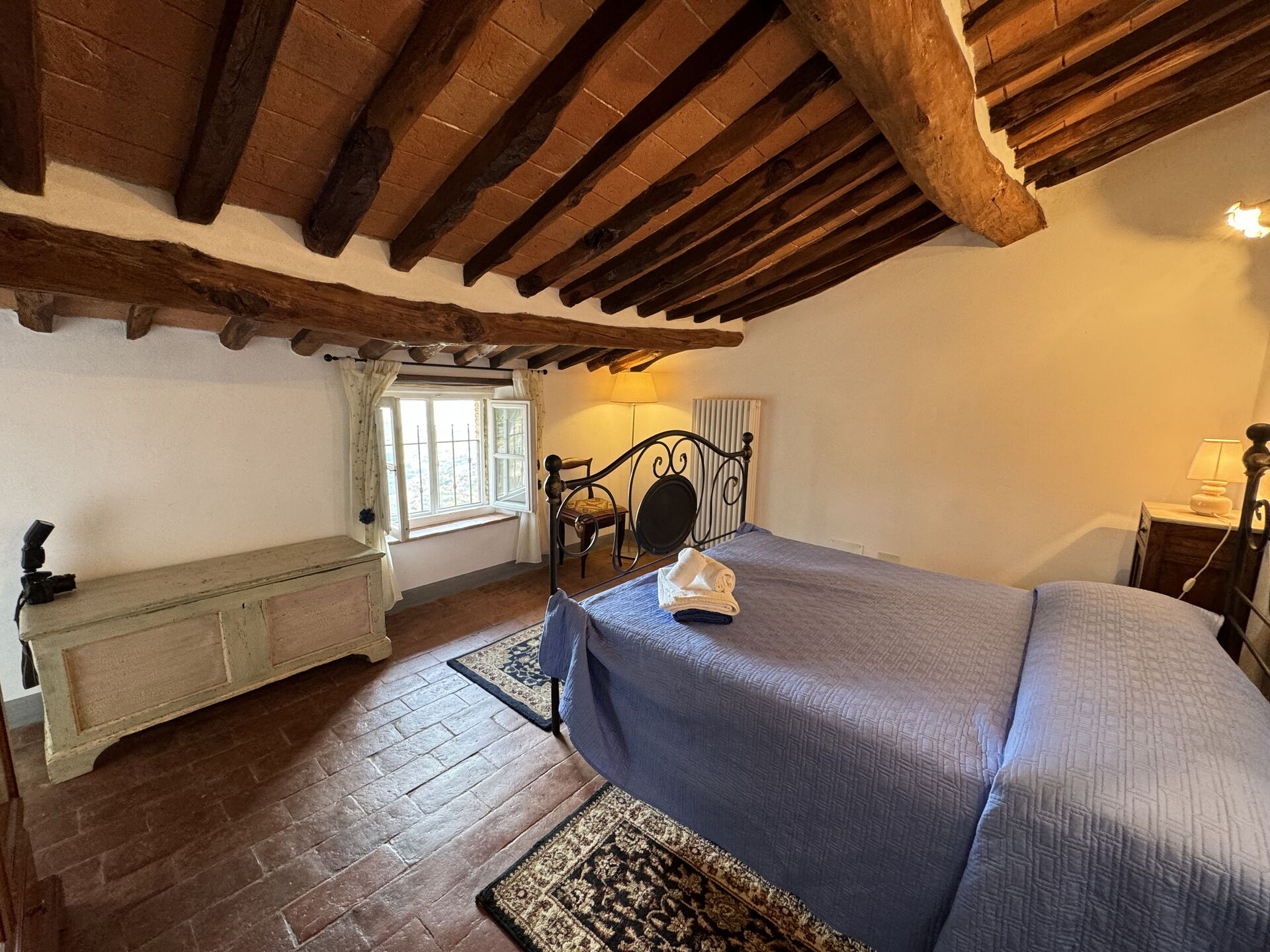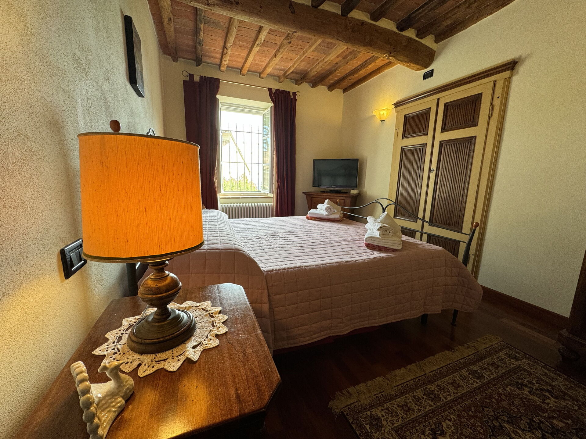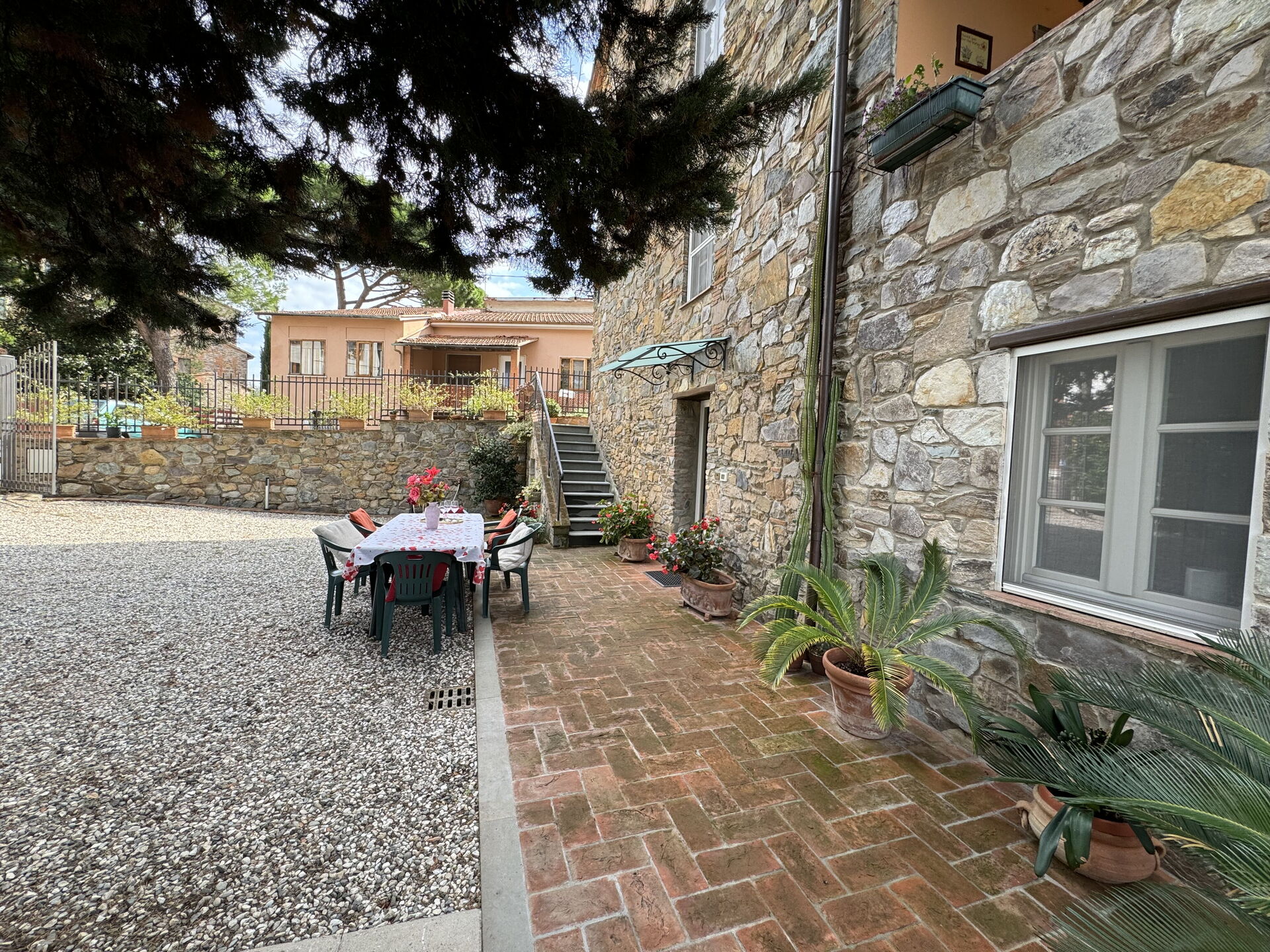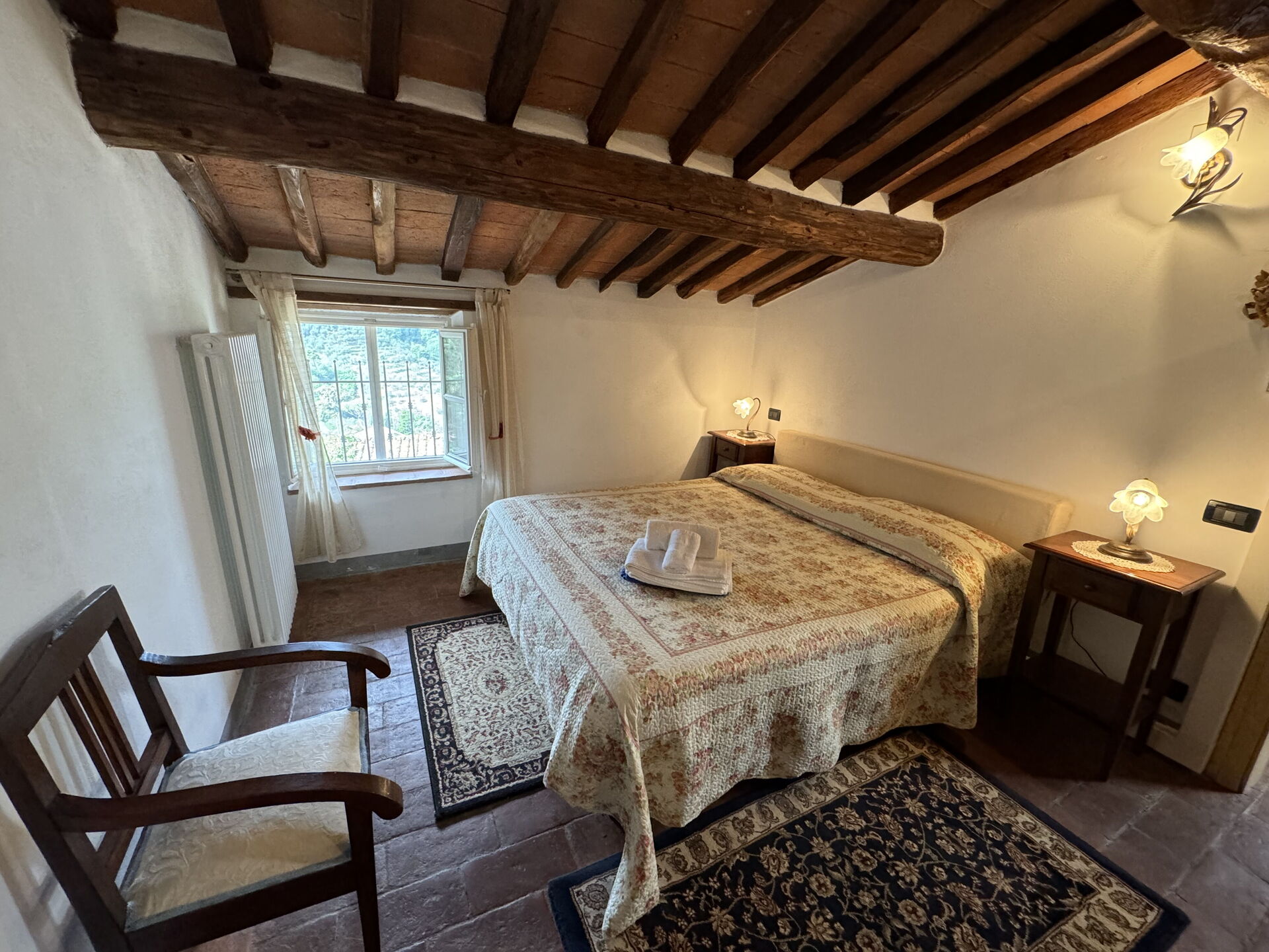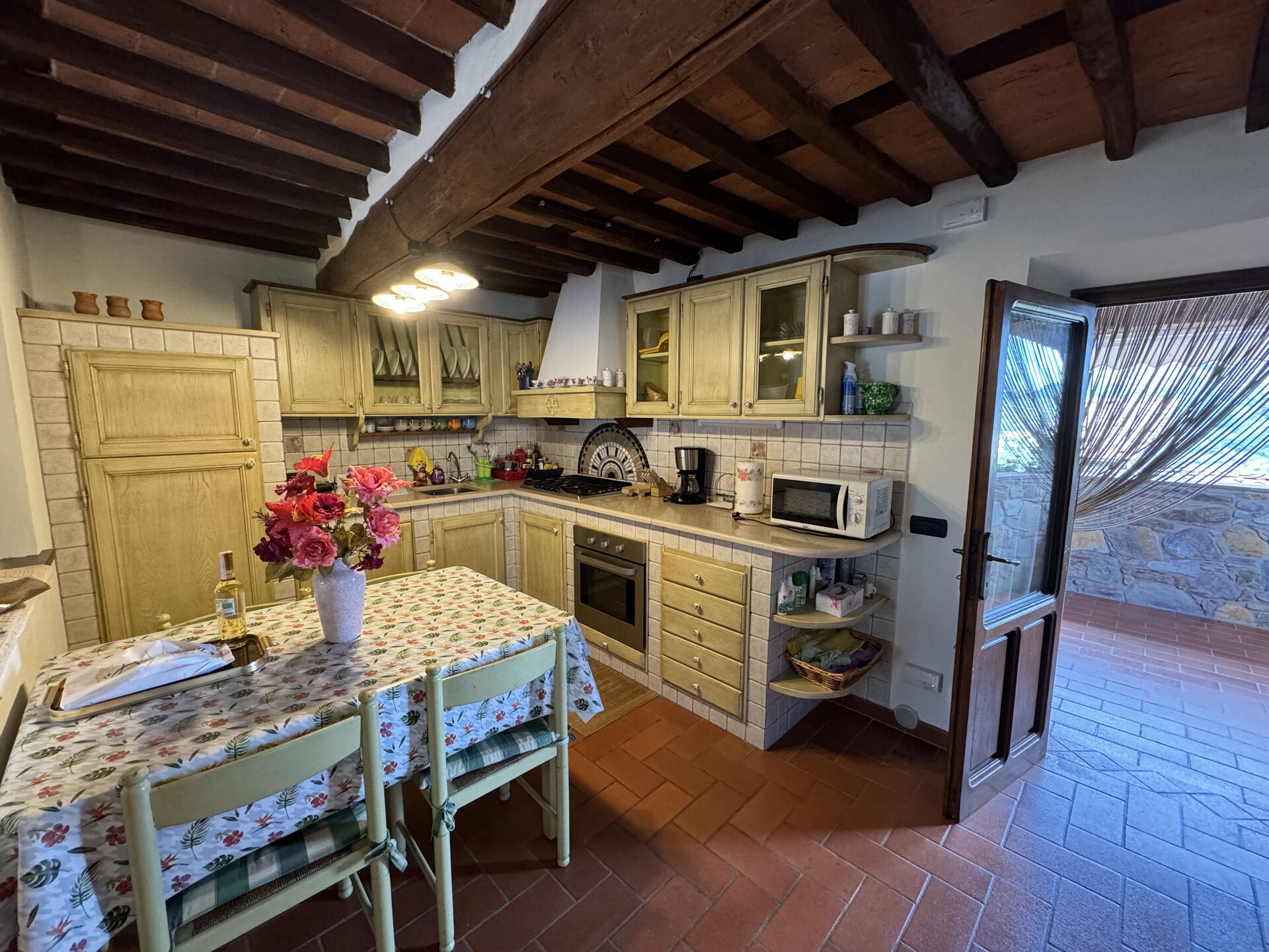 When you arrive you’ll find a lovely clean well-maintained property with views of the hills ideal for a relaxing holiday in Tuscany. After a hectic day of visiting museums, spend some time with friends and family poolside enjoying a glass of wine - a perfect way to relax at the end the day. Dining with friends and family is a huge part of the Tuscan culture. Take advantage of the kitchen to prepare meals using local produce while on your holiday. The kitchen includes coffee machine, microwave, toaster, stove and refrigerator, as well as, plenty of tableware and cutlery for up to six people. Dine 'al fresco' like a real Tuscan, the fully furnished terrace is the perfect setting to enjoy food, family and the nice Tuscan weather.