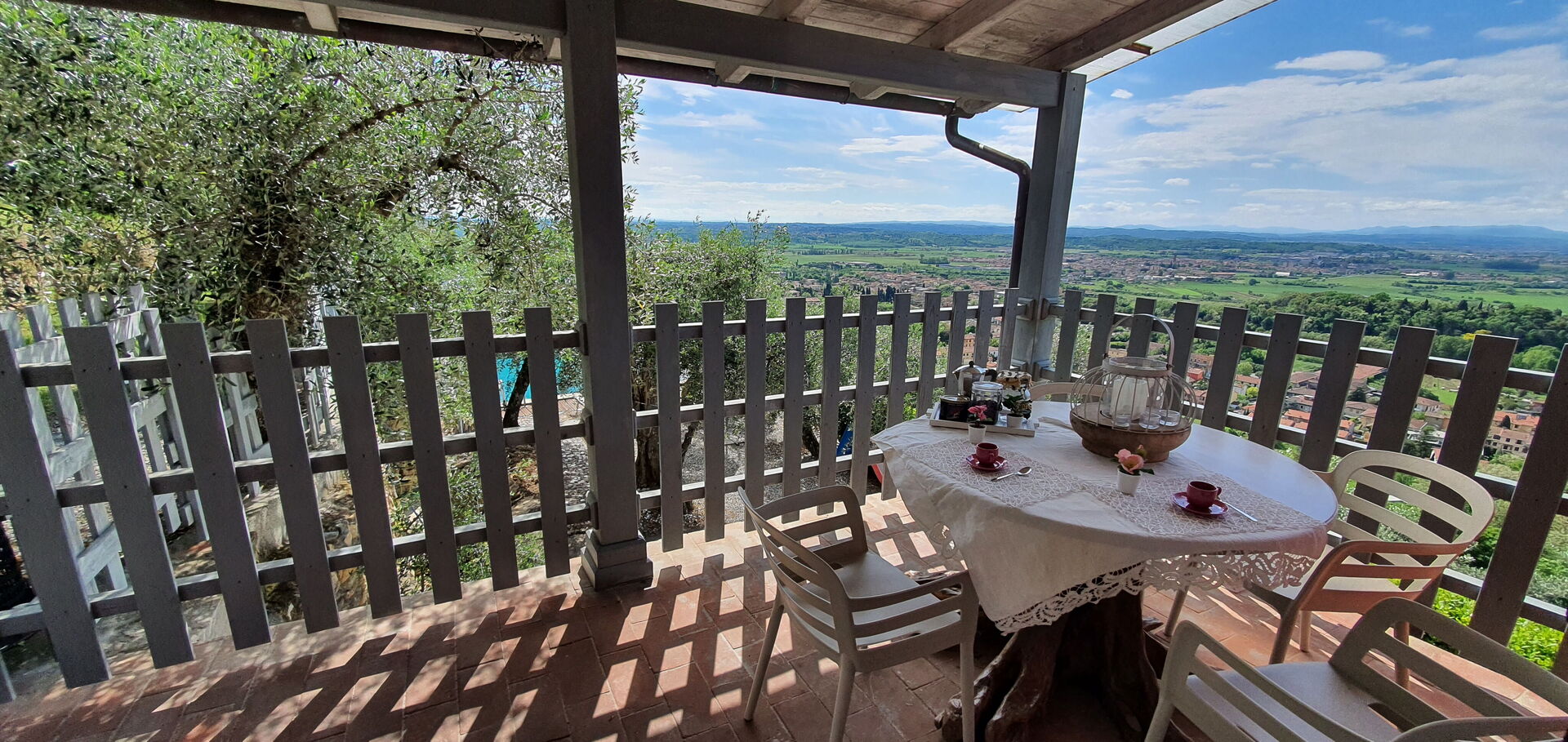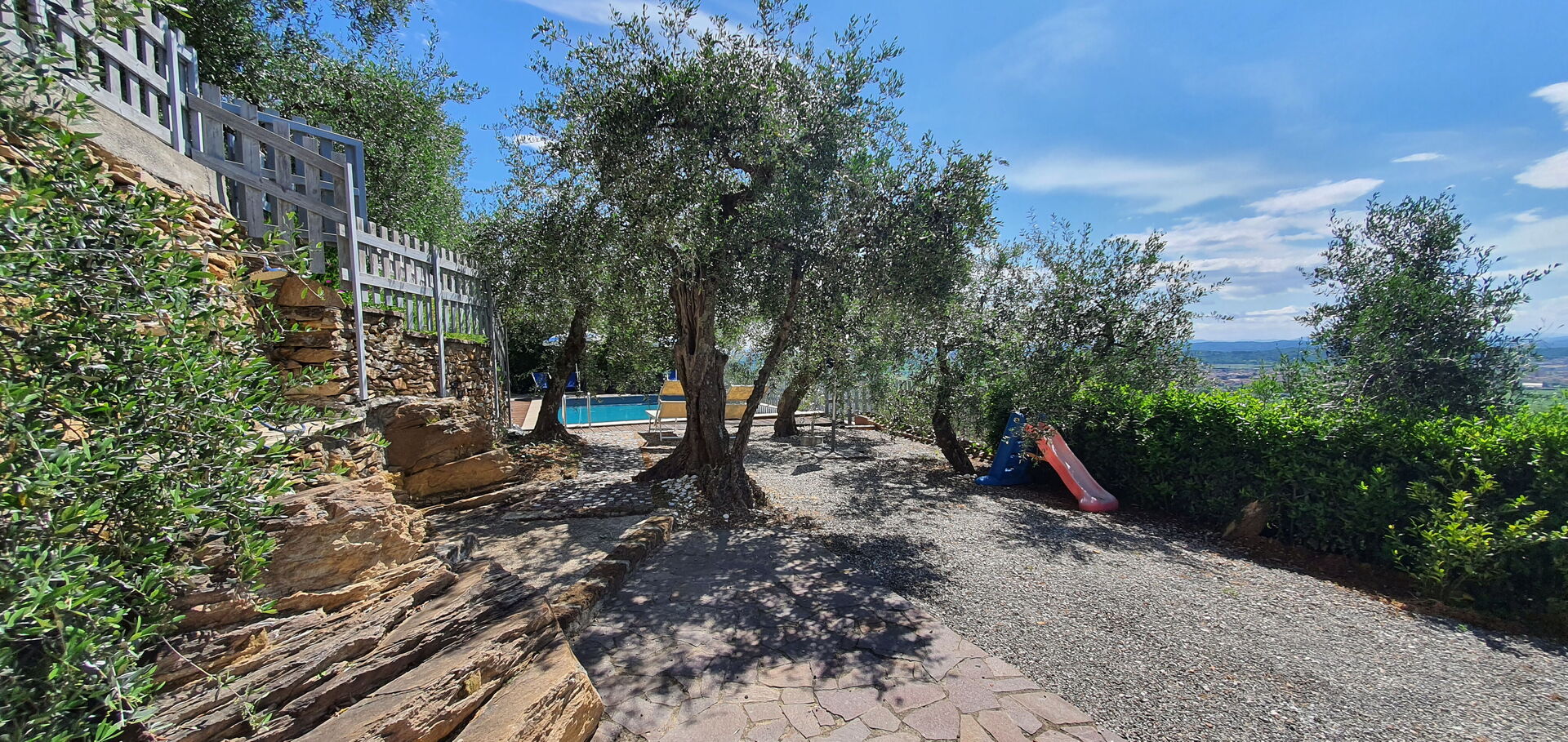 When you arrive at Podere San Martino you’ll find a lovely clean well-maintained property with views of the hills perfect for a peaceful holiday in Tuscany. Regardless of how you spend your days - sightseeing, shopping, visiting museums or just driving in the countryside, when you arrive home you can relax with your family and friends at the pool for a perfect ending to another day in Tuscany. Also available outside are a playground and barbecue grill. There is a kitchen including coffee machine, microwave, toaster, stove and refrigerator, as well as, plenty of tableware and cutlery for up to six people. If you prefer to dine 'al fresco', there is a fully furnished veranda where you can enjoy the weather while dining outdoors.