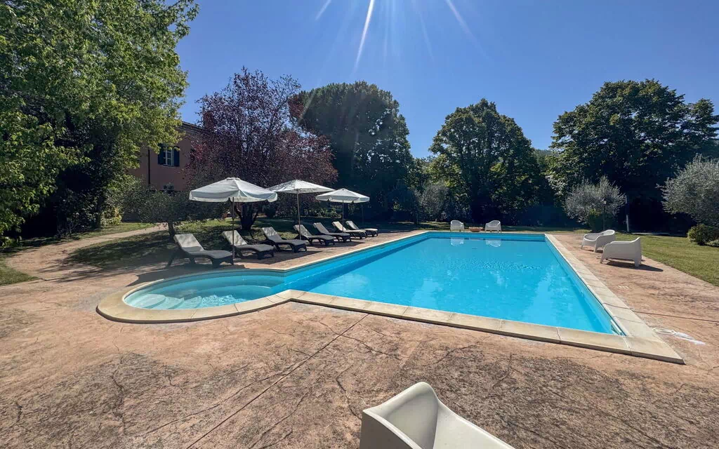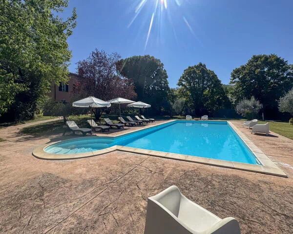 The outdoor spaces of Villa "Paolotti" are thoughtfully designed to complement the natural beauty of the surrounding Umbrian landscape. The private garden, fully enclosed by fencing, offers a safe and tranquil environment where you can enjoy the fresh country air in complete privacy. At the heart of the outdoor area lies the swimming pool, measuring an impressive 14 x 6 metres with a depth of 145 cm, available seasonally from 25 May to 30 September, providing the perfect setting for refreshing swims on warm summer days. A charming pergola creates a shaded retreat ideal for leisurely afternoons, while the garden furniture allows you to dine, relax, and socialise in comfort beneath the open sky. A barbecue is also available, offering you the opportunity to prepare and enjoy meals al fresco while taking in the serene views of the Umbrian countryside.