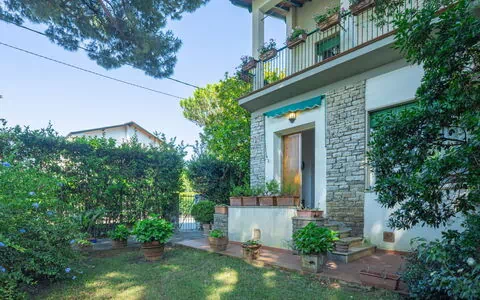 Nestled within a serene residential area of Lido di Camaiore, Italy, this elegant single-family villa known as "Madda" offers a refined vacation rental experience surrounded by the natural beauty of towering pine trees and a lush private park. The property is thoughtfully designed to provide maximum privacy, set within a peaceful enclave of detached villas where tranquility is a defining feature. The villa's interior is distinguished by elegant finishes and is beautifully embellished with original artworks and paintings, creating an atmosphere of understated sophistication. Guests benefit from a private fenced yard of 500 square meters, complete with a natural garden and comfortable garden furniture, ideal for relaxing in a secluded outdoor setting. Parking is available on the public road directly outside the property, offering convenient access for arriving guests. The villa is equipped with a tennis court nearby for those who enjoy an active stay, and wireless internet connectivity ensures that guests remain connected throughout their visit.