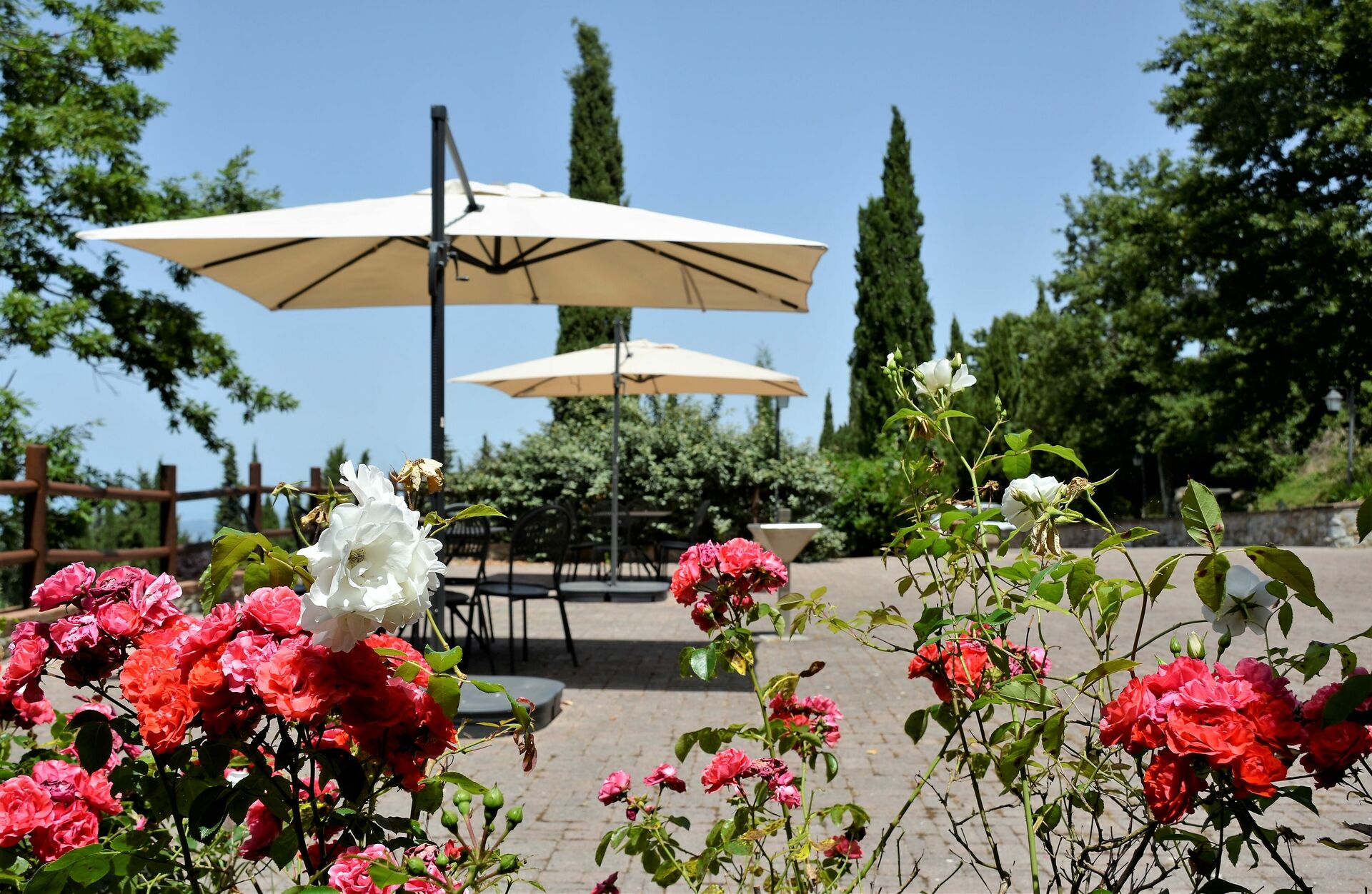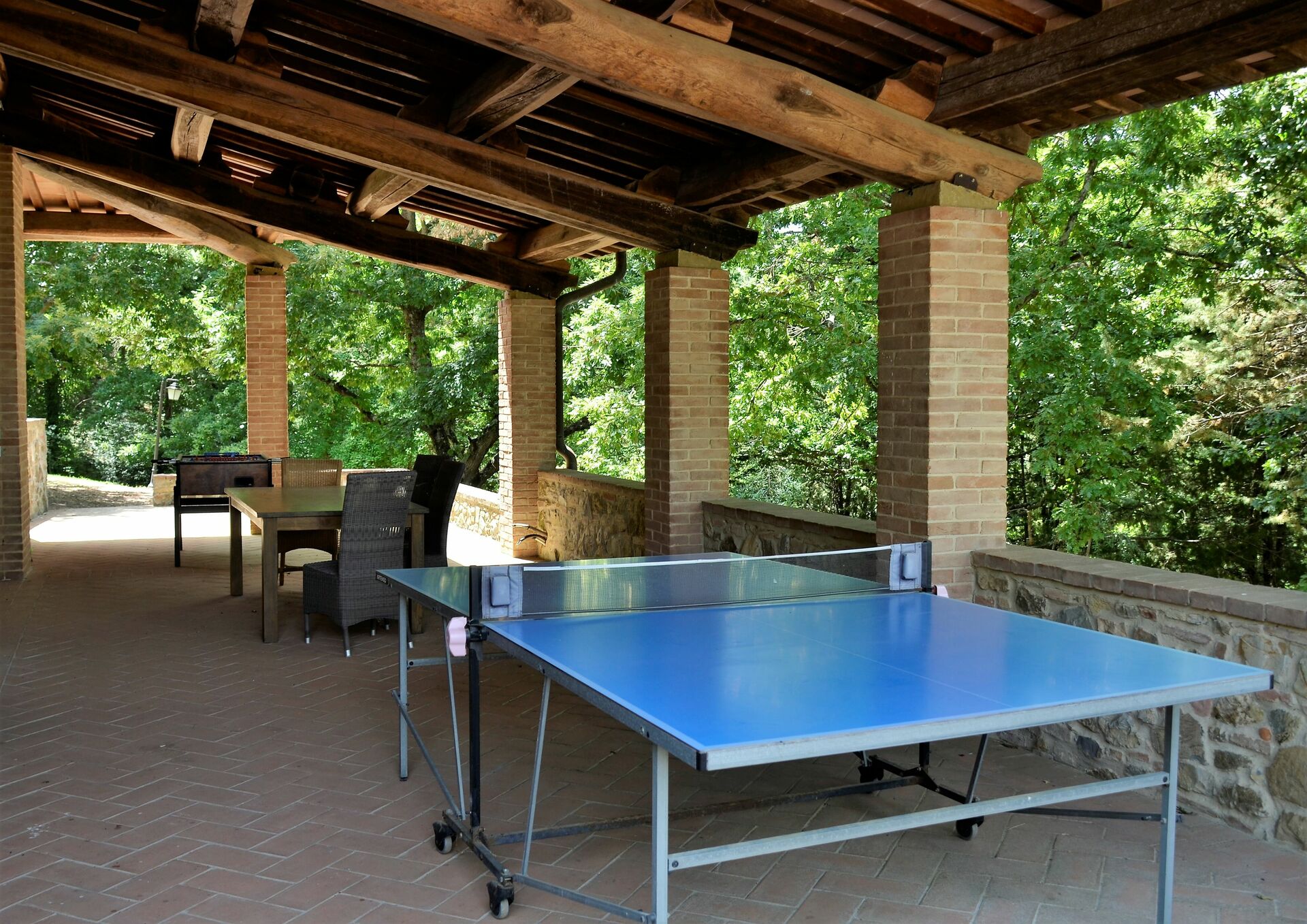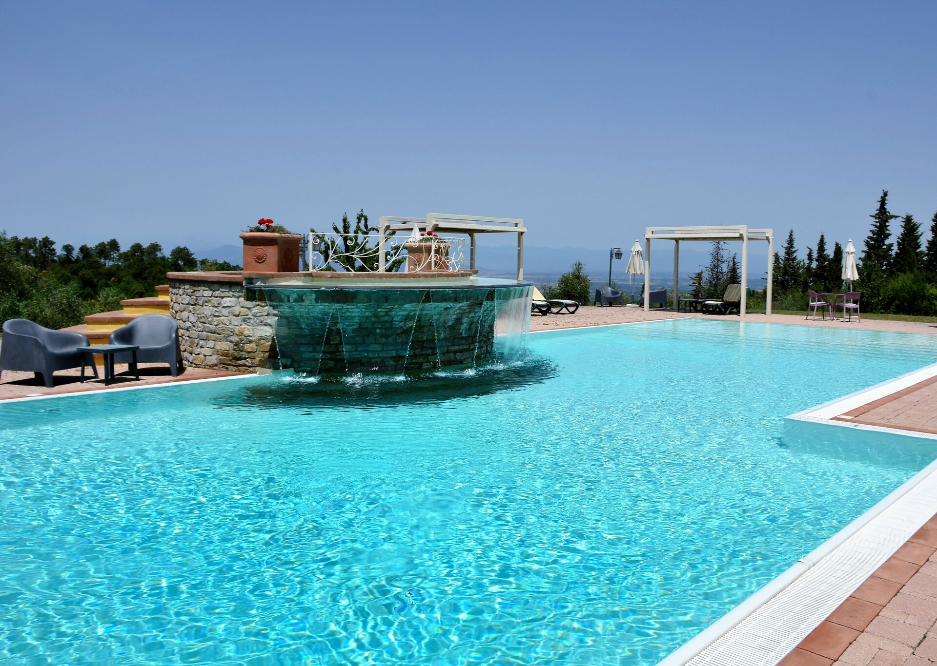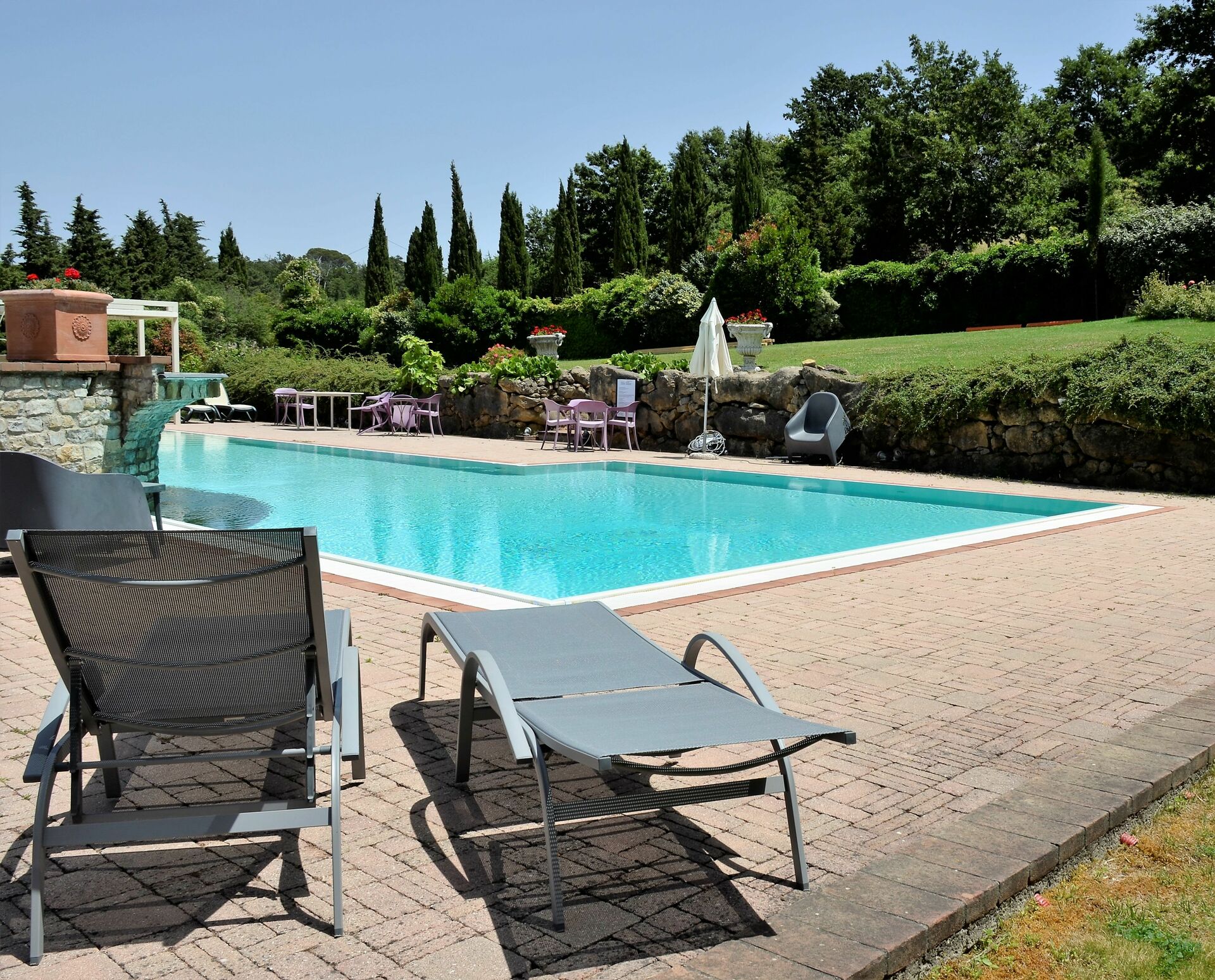 Garden (170000 m2): swimming pool (private, length: 20m, width: 6m, depth: 1.5m, max. depth: 2m, min. depth: 0.3m, outdoor), shower, WIFI internet, barbecue, al fresco dining, four dining tables (people: 20), garden furniture, terrace furniture, fenced, enclosed property.