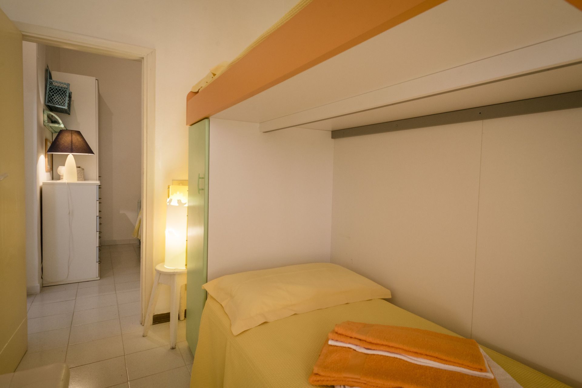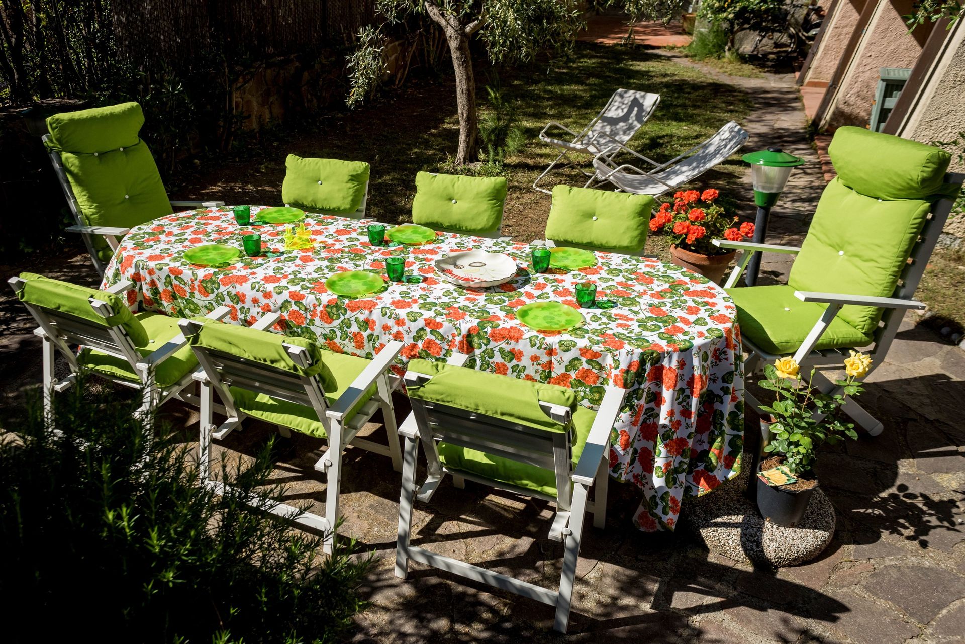Kitchen + living room: dining table (people: 6), fridge, stove top, oven, italian coffee machine, two sofas (people: 3), WIFI internet, exit to the garden.