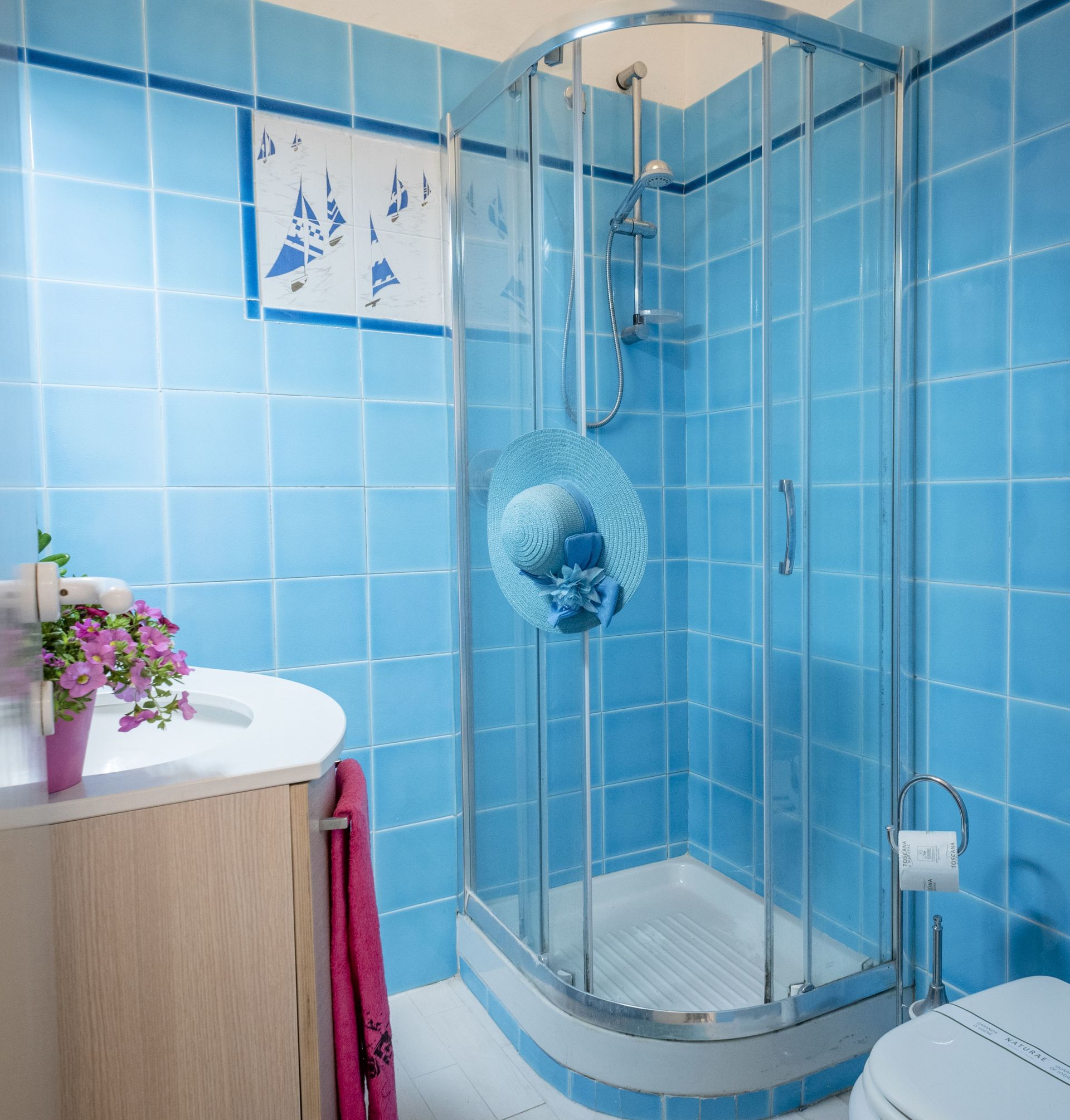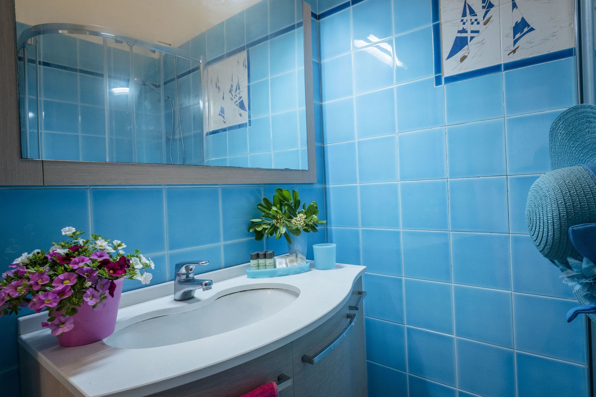 Bathroom: basin, toilet, bidet, shower, hairdryer.