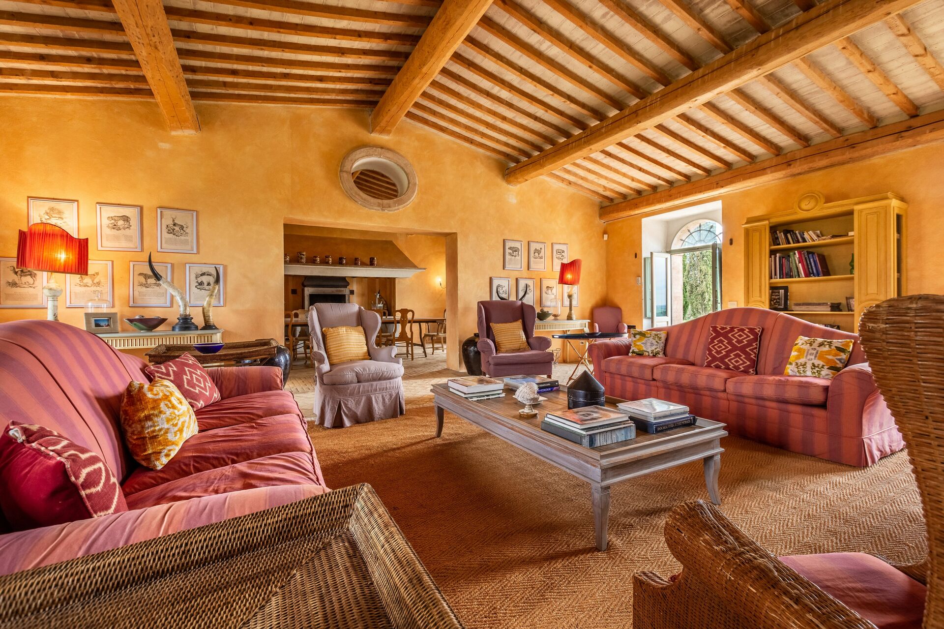 Living room 1: two sofas (people: 6), four armchairs, fireplace, WIFI internet, television, vcr / dvd, stereo hifi, exit to the garden, exit to the patio.