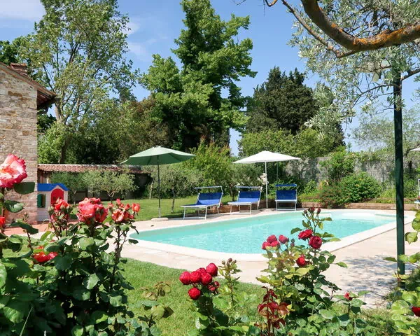 The outdoor spaces at "Ambrogetta" are truly among its most captivating features, offering a generous and varied environment in which to spend leisurely days beneath the Tuscan sky. The swimming pool, measuring 8 x 4 metres with a depth of 120 cm, is available for use from 01 May to 22 October each year, providing an extended season during which you can enjoy a refreshing swim or simply bask in the warmth of the Italian sun. An outdoor shower is conveniently located nearby, allowing you to rinse off comfortably after a dip in the pool. The surrounding garden, set within the property's vast 20,000 m2 grounds, features a well-maintained lawn interspersed with trees that offer natural shade and a sense of peaceful seclusion. While the garden is not fenced, it flows naturally into the broader landscape, creating an open and inviting atmosphere that encourages relaxation and exploration in equal measure.
